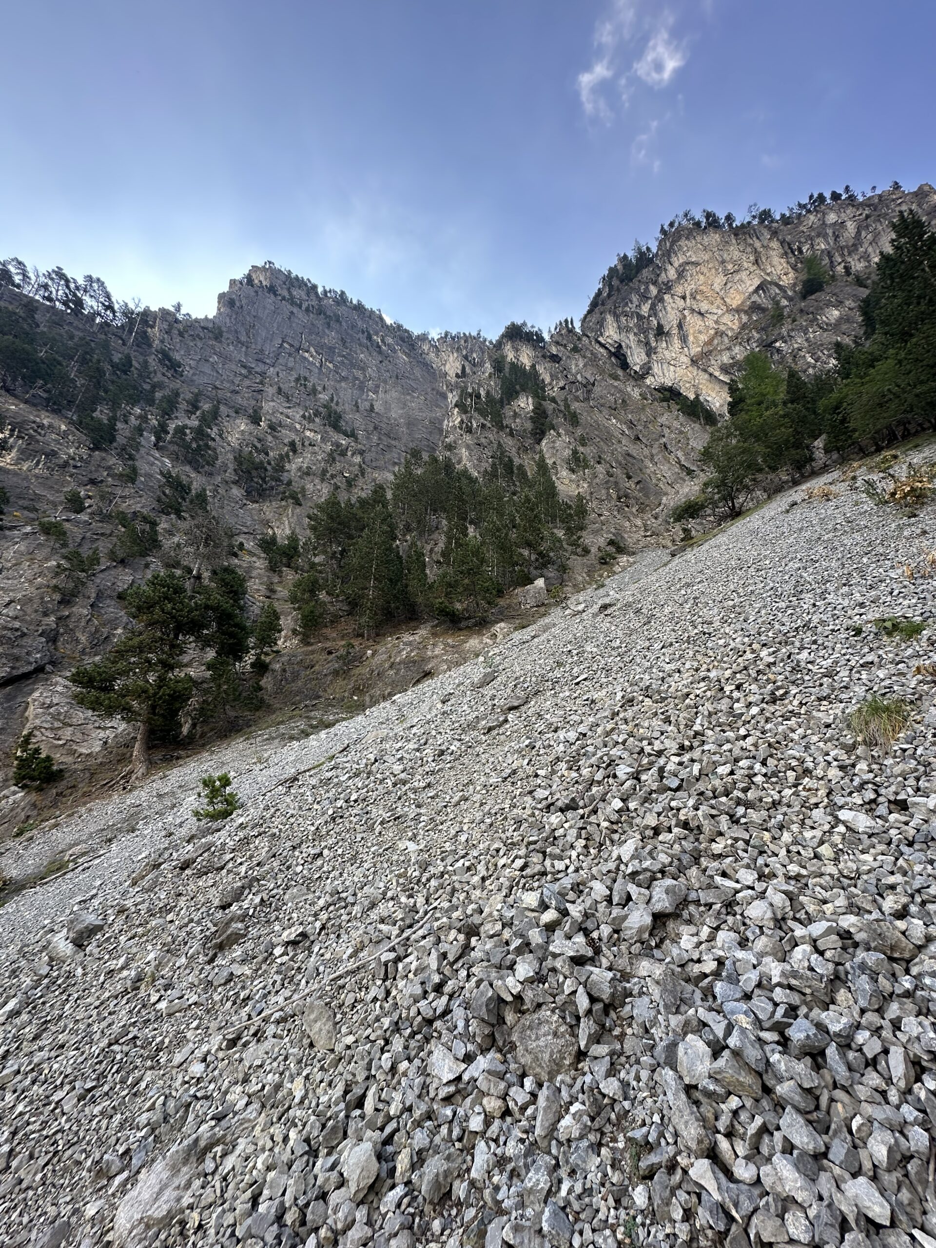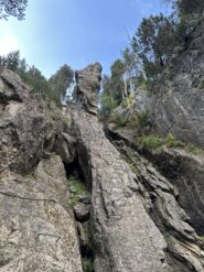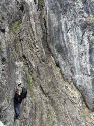 Ferrata ben tenuta, con cavo in guaina nera e rinvii a ricciolo. Alcune staffe piegate nella parte alta, ma comunque ben ancorate e non…