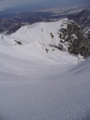 neve ottima, in salita con manto duro ed uniforme, fino al salto con sci, poi tratto a ramponi e verso 1850 nuovamente con sci. Deciso… Vedi tutto
