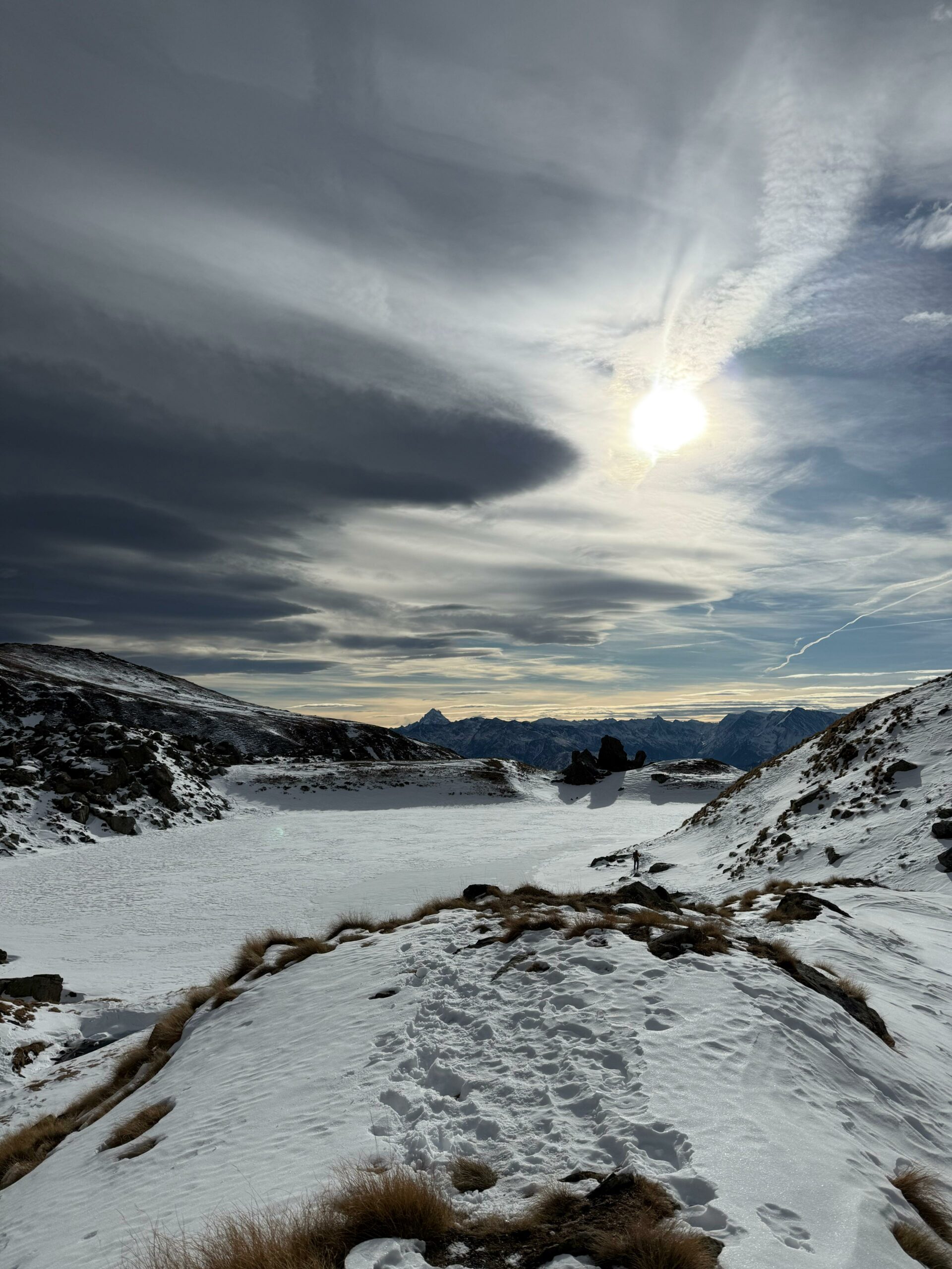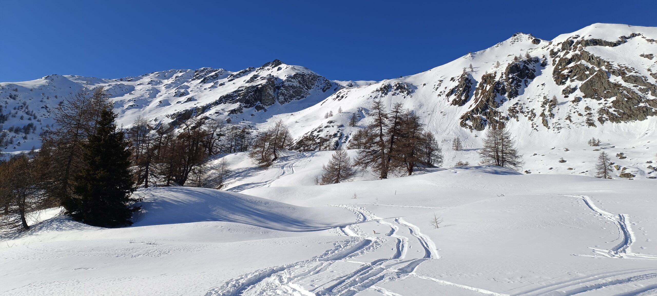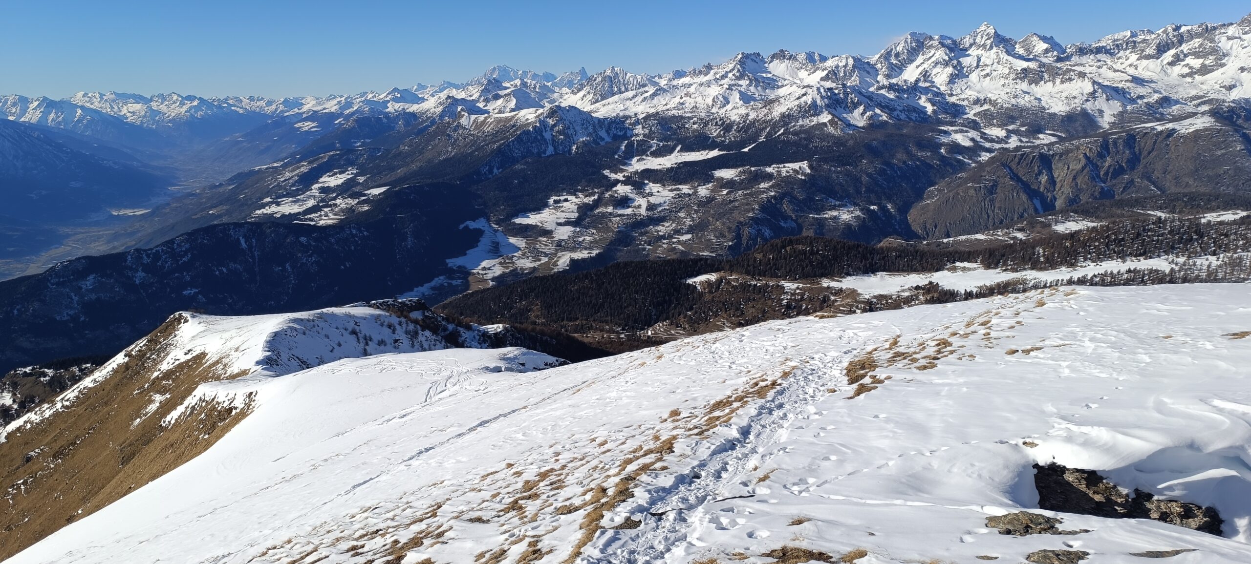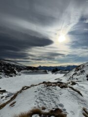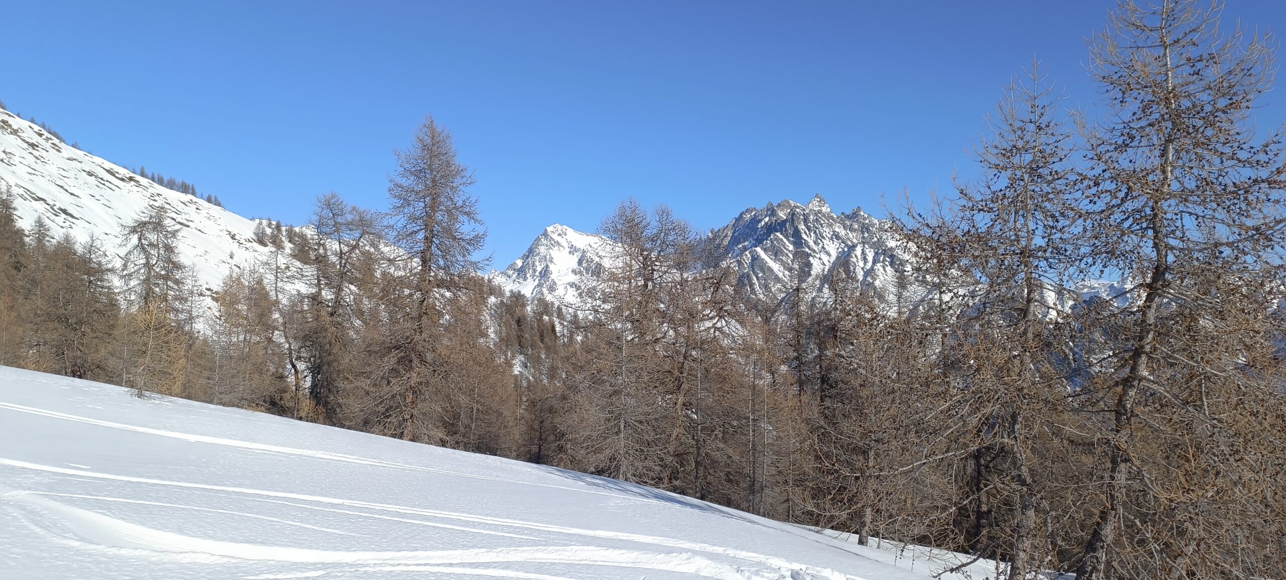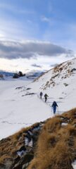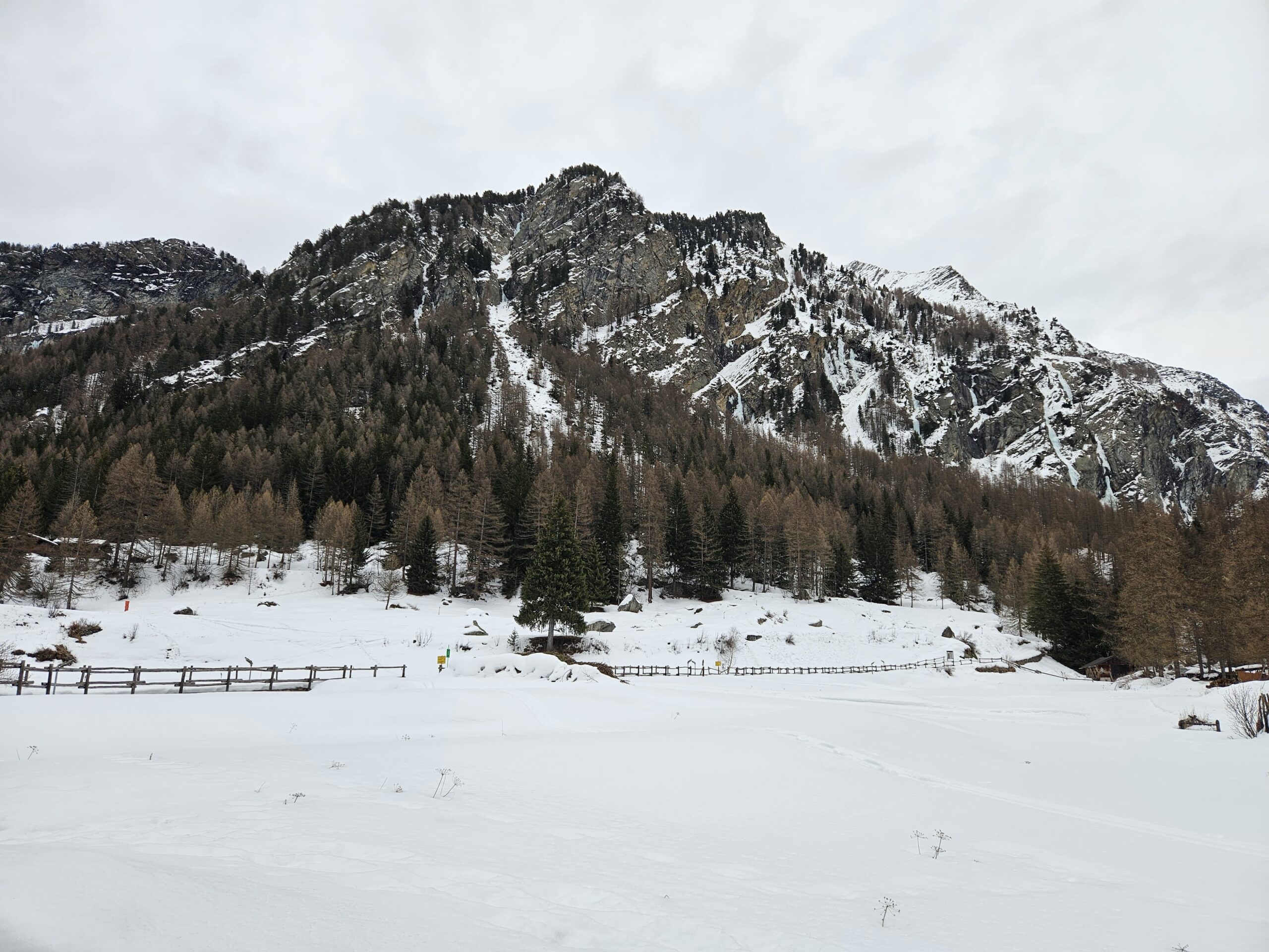 Partiti dalla strada e messe subito le ciaspole. Tante tracce di skialp e stradina battuta per cui c'è solo l'imbarazzo della scelta su quale utilizzare.…