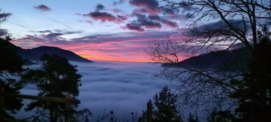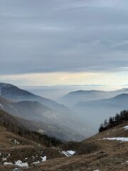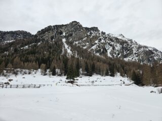 Poca neve fino al torrente poi arrivata sotto al primo alpeggio ho messo le ciaspole. Naturalmente super traccia anche nel bosco dopo il secondo alpeggio…