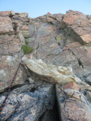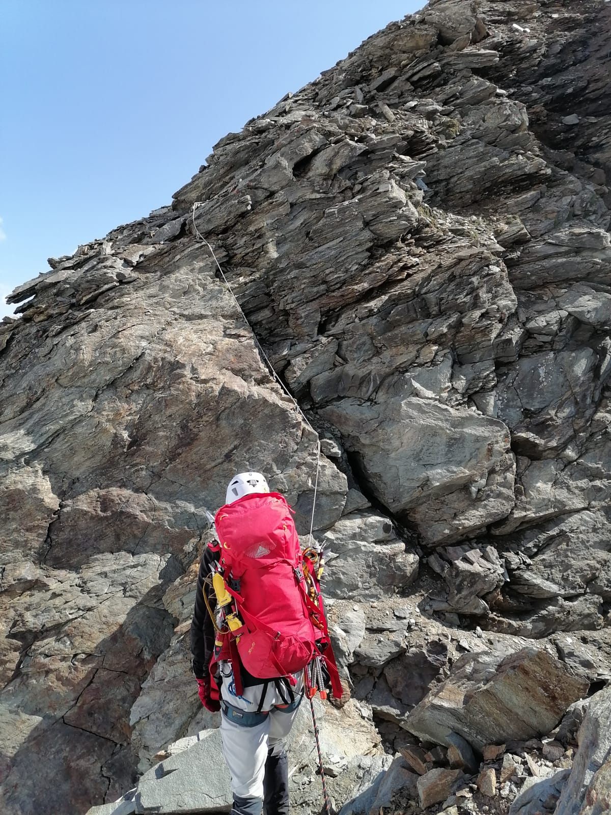 Tutto come da relazione, salita dai piani di Rosareccio diretta e ripida, la placca che si attraversa appena prima del colle l'abbiamo trovata completamente bagnata…