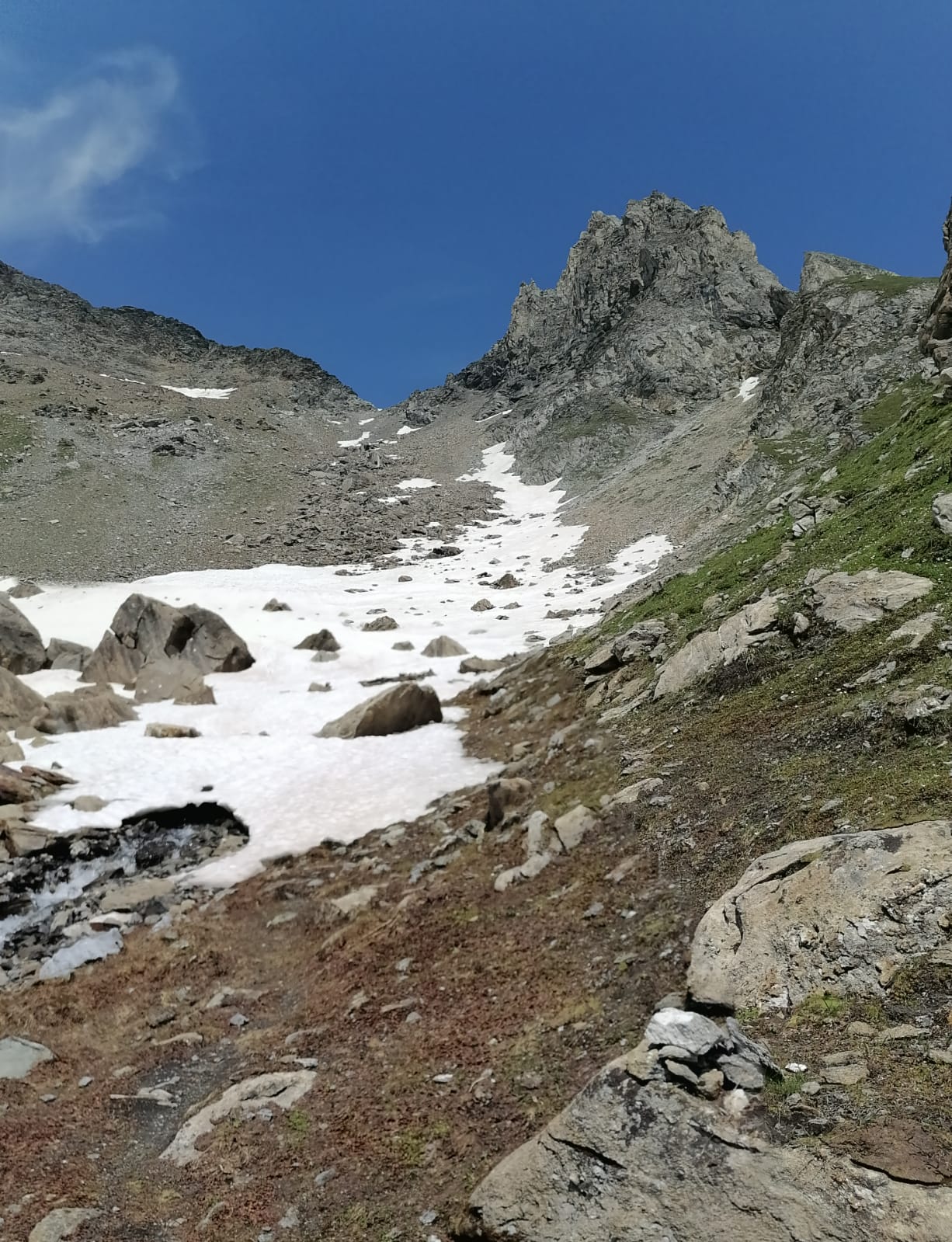 Sentiero ben segnato fino alla gran pietraia sotto il colle dopodiché si sale dove si preferisce. Dal colle seguiti ometti lato ponton(dx) all'inizio un po'…