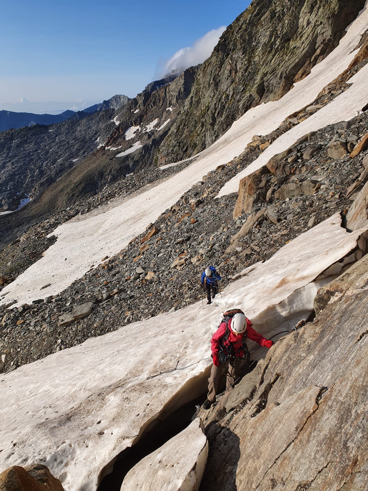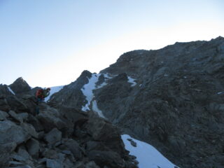 Arrivati al colle dell'Eveque siamo scesi sul versante opposto qualche decina di metri fino a reperire un canale inizialmente un po' delicato (rocce instabili e…