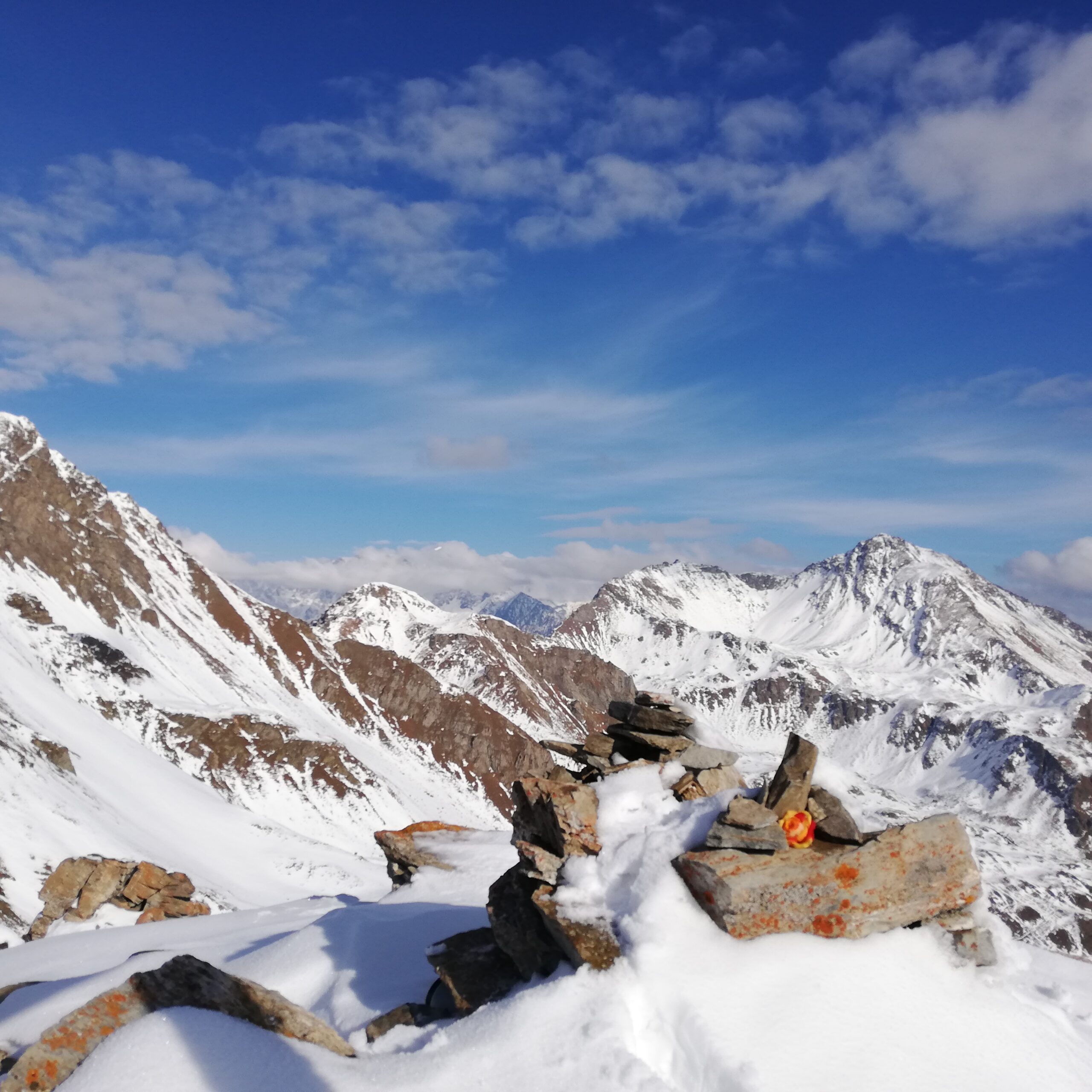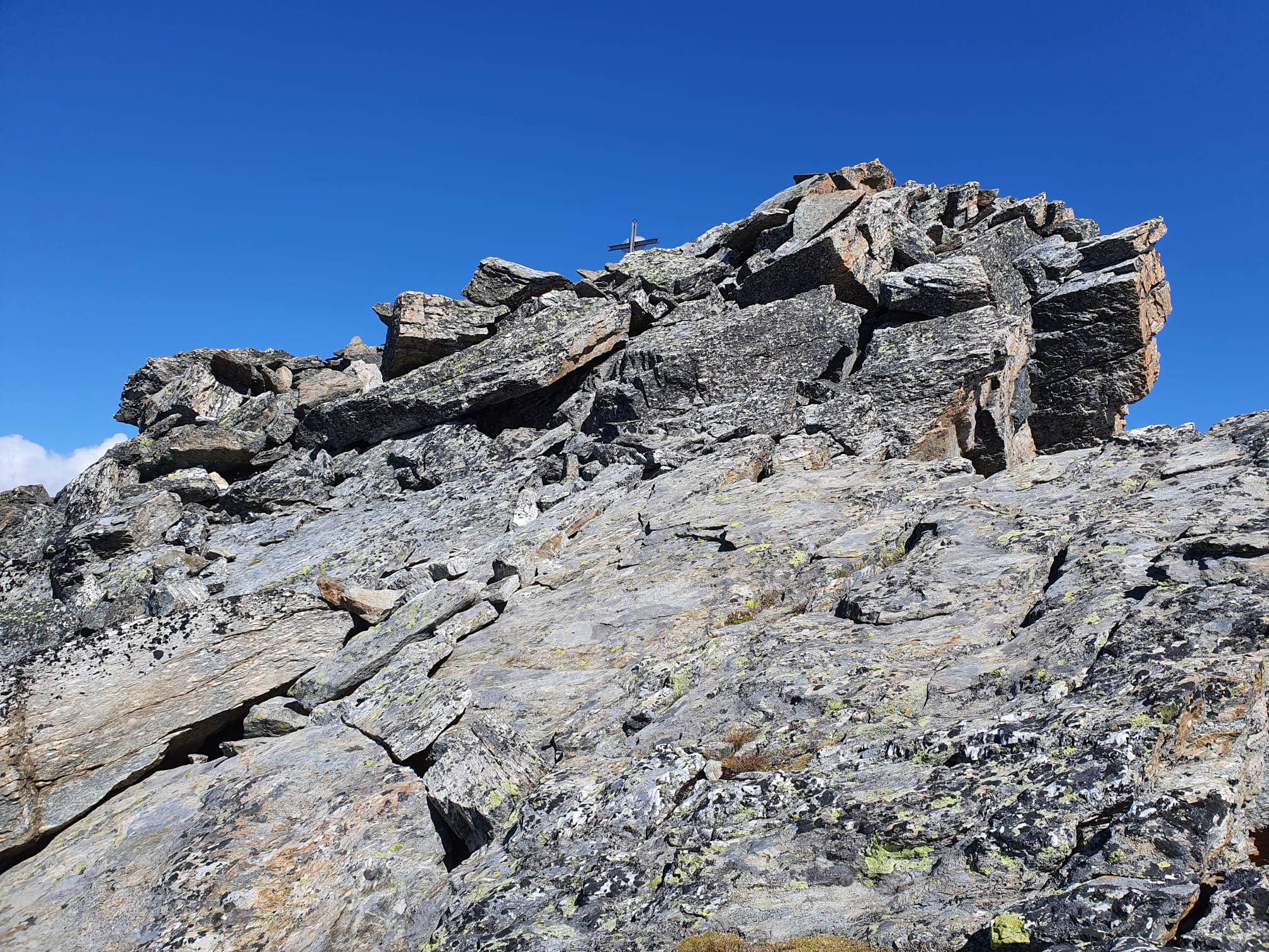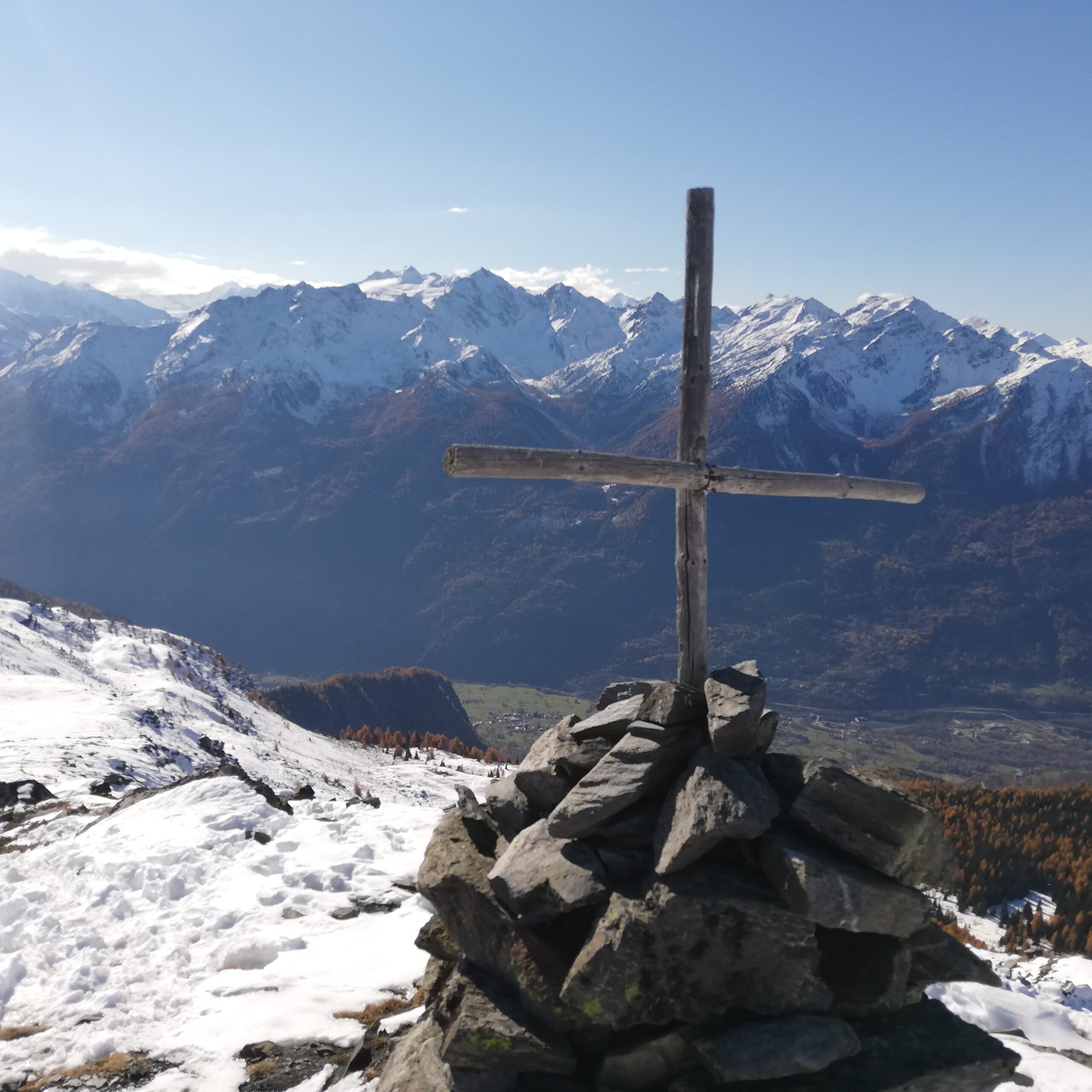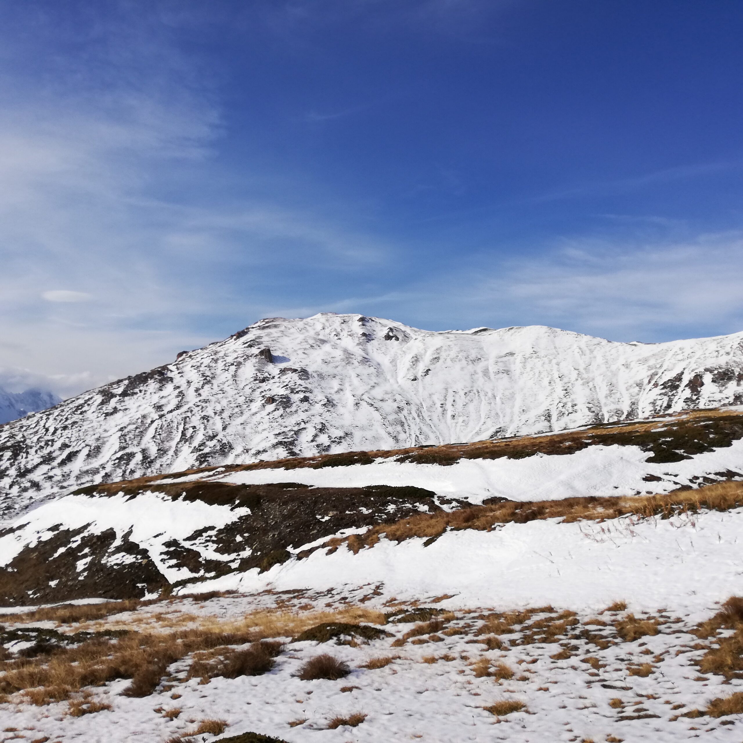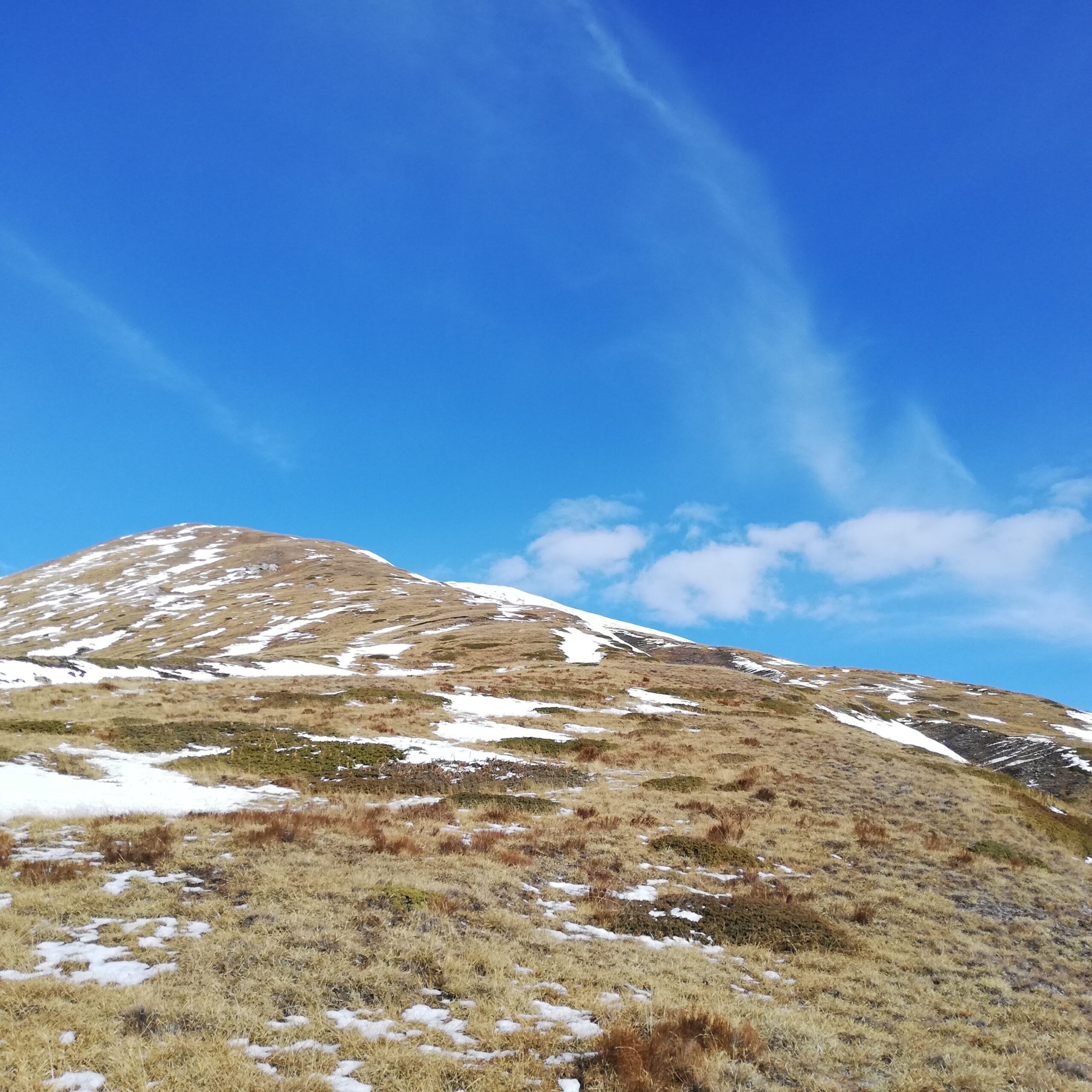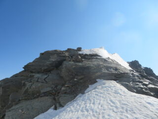Partite da Vetan siamo salite puntando il costone ovest a la punta col grande ometto così da evitare tratti innevati. La salita avviene senza percorso…