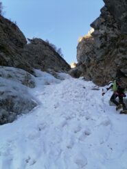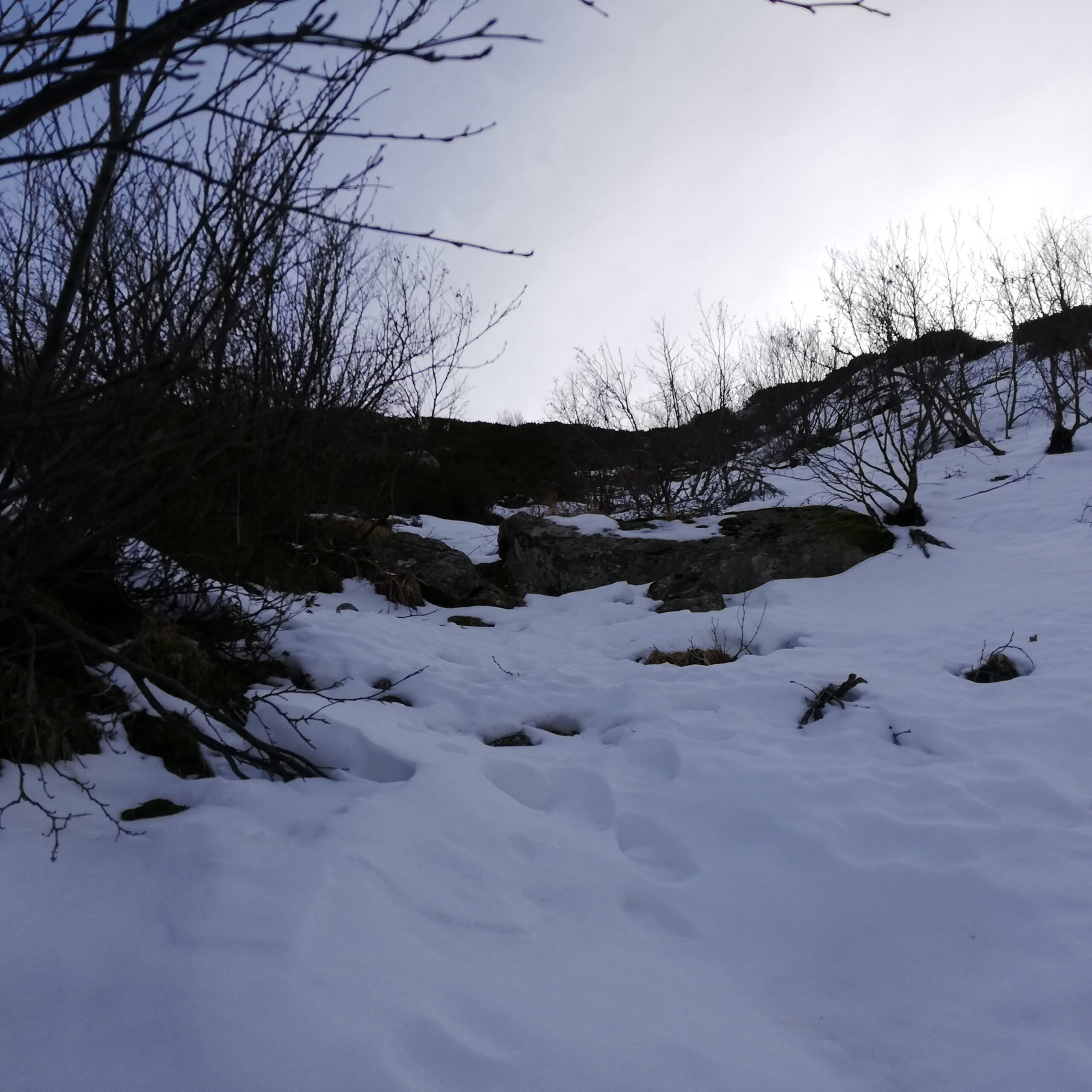 Sentiero sgombro da neve fino a quota 1500/1600mt, due "belle" lastre di ghiaccio sulla strada a cui prestare attenzione, poi alternanza di neve e non…