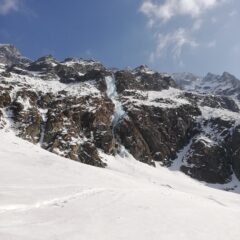 Gita ancora in condizioni accettabili anche grazie al buon rigelo nella notte tra giovedì e venerdì. Canale di accesso al ghiacciaio del gran val…