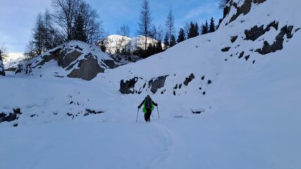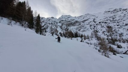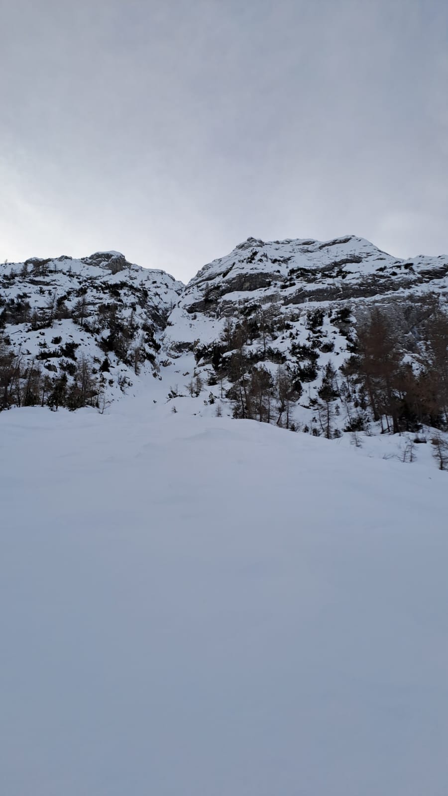 Avvicinamento ben tracciato fino al bivacco, scesi per erba ripida fino a riprendere le tracce su neve portante dirette al canale. La neve non…