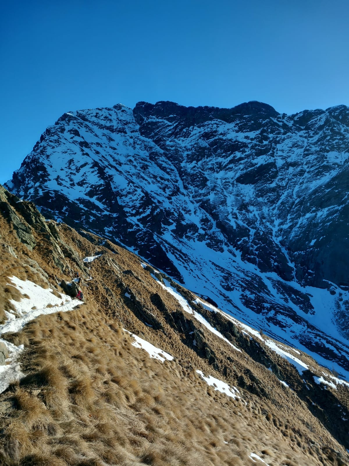 Sentiero sempre ben segnato fino in cima, la prima neve si incontra a 1500 mt ma sporadica poi continua negli ultimi 100mt. Non abbiamo usato…