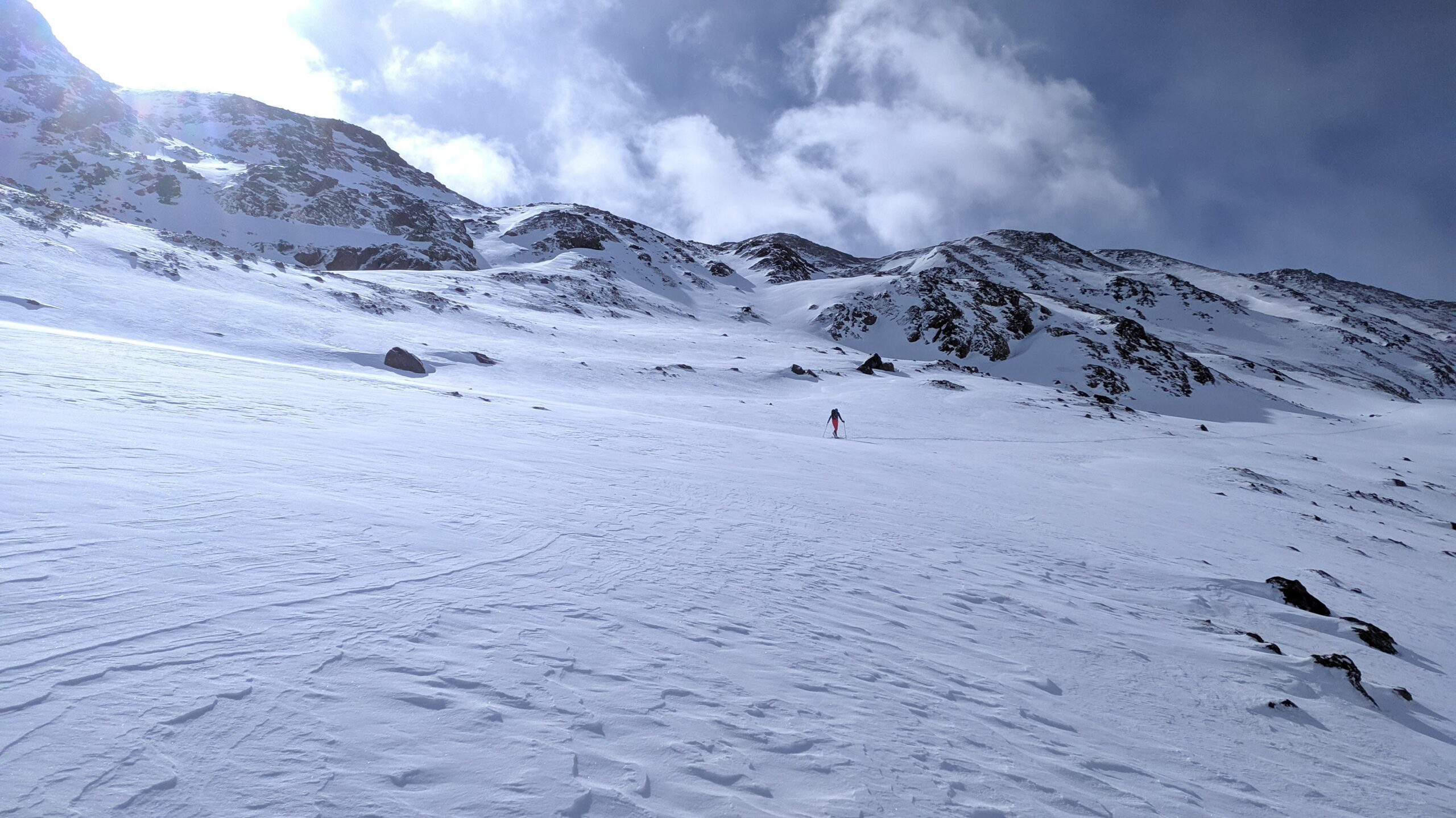 Scommessa azzeccata oggi sul versante sud. Super sciata fino al lago. Saliti dal canale subito sotto la vetta tracciando. Il classico canale di sx lo…
