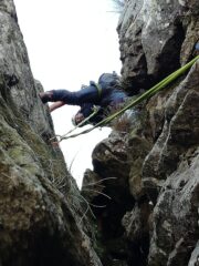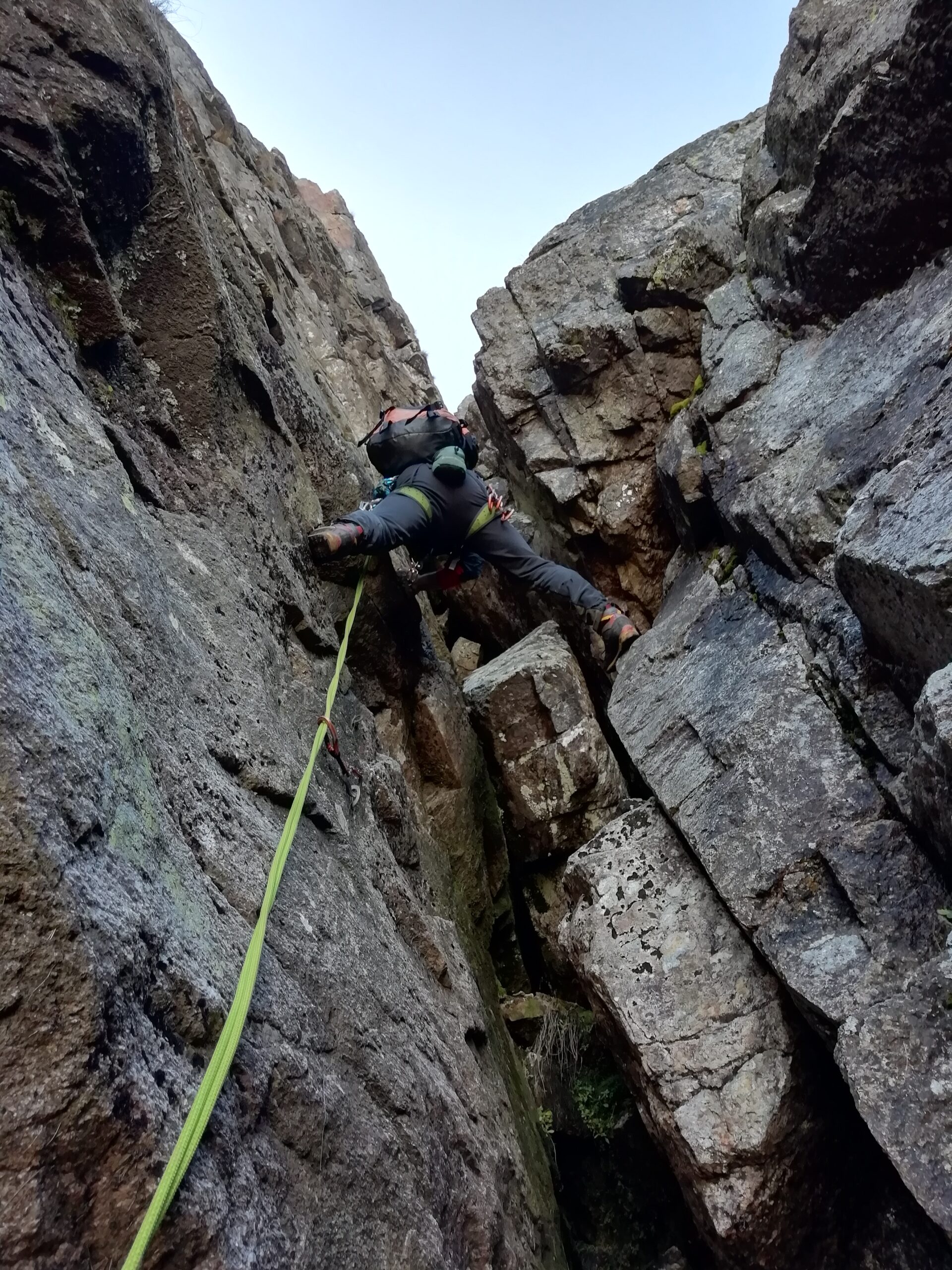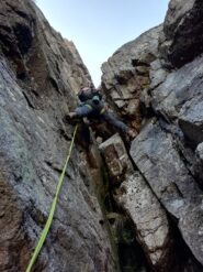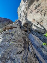 canalino costante nella difficoltà,asciutto tranne il secondo tiro bagnato. Roccia compatta e via che ha un sapore classico,molto bella.Da fare per chi ama l'arrampicata classica!