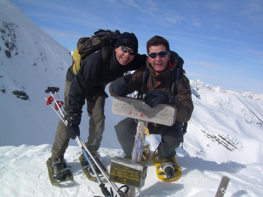| aquila74 | Io e davide in punta | aquila74 | Vista verso il Monviso. | aquila74 | Io in punta | aquila74 | Dalla cima del Giobert vista verso il Monviso. | aquila74 | Gruppo di racchettisti in punta. | aquila74 | Il santuario di Sant' Anna di Vinadio visto dal passo di Bravaria. | aquila74 | Io al passo Bravaria con Maladecia sullo sfondo. | aquila74 | Non essendoci libro al passo, abbiamo firmato su neve. | aquila74 | I miei due compagni di gita, Cristiano e Livia al passo Bravaria.
