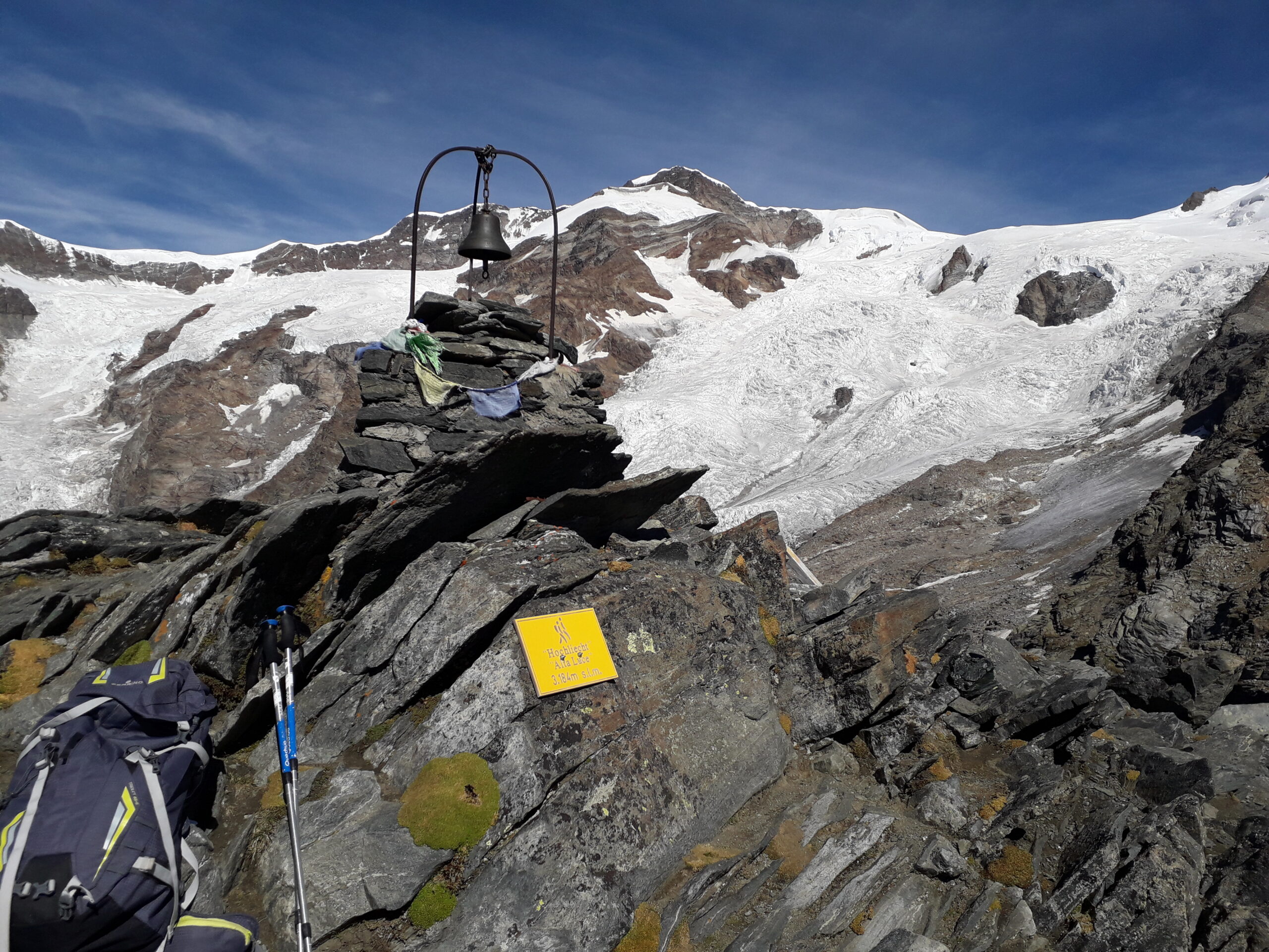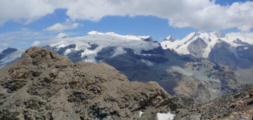 Sentiero che sale deciso, l'ultimo tratto in modo particolare. Dalla vetta gran panorama, è una vetrina sul Rosa e i suoi ghiacciai morenti. Non ci sono…
