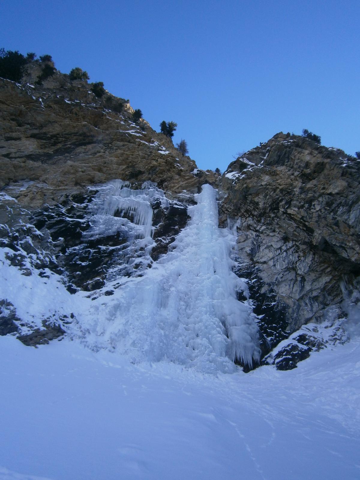 La cascata è in buone condizioni,si possono fare 2 linee,noi siamo saliti a dx facendo sosta su ghiaccio dietro la colonna,si esce bene e si…