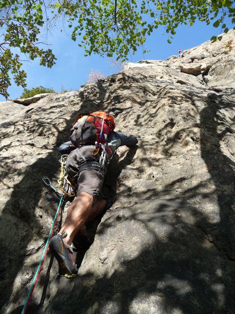 bella via, piuttosto continua su un buon grado; il tiro più difficile come già detto probabilmente è un pelo più duro, probabilmente 6b, non azzerabile.