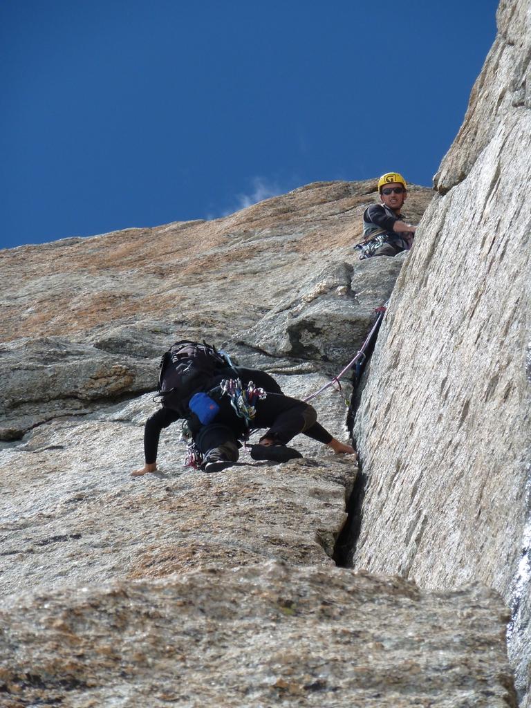 | bdamiano | il super si fa vedere... | bdamiano | Daniele sul primo tiro | bdamiano | terzo tiro | bdamiano | in traverso (facile) verso il couloir | bdamiano | si attacca.. | bdamiano | quasi un uscita dal Gervasutti | bdamiano | verso la parte alta | bdamiano | ottime soste a chiodi | bdamiano | si bivacca... | bdamiano | discesa in doppia | bdamiano | la nostra cengia