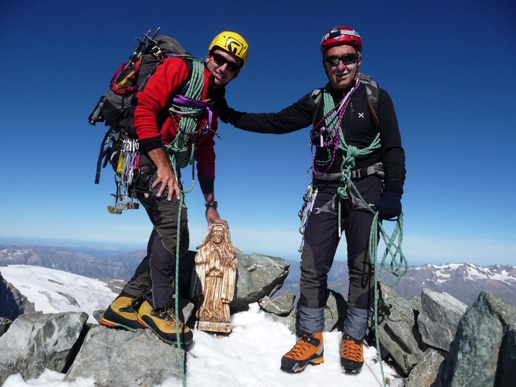 | bdamiano | salendo al Monzino | bdamiano | sul ghiacciaio del Brouillard | bdamiano | alcuni crepacci | bdamiano | Eccles | bdamiano | il pilastro rosso | bdamiano | dal colle d'eccles in traverso fino alla terminale | bdamiano | alba sulla Blanche | bdamiano | la terminale sotto i piloni | bdamiano | si arriva all'attacco dello sperone (foto S. Deleo) | bdamiano | uscita del primo tiro si traversa a sinistra (foto M. Sanguineti) | bdamiano | iniziano le difficoltà (foto M. Sanguineti) | bdamiano | il pilone alla nostra sinistra | bdamiano | lo sperone | bdamiano | la Chandelle | bdamiano | una cordata sul Pilone centrale | bdamiano | a metà via | bdamiano | la placca di VI (foto M. Sanguineti) | bdamiano | Lorenzo in azione | bdamiano | il tiro di V+ | bdamiano | Sergio alle corde, io faccio sosta sul tiro di V+ (foto M. Sanguineti) | bdamiano | l'uscita sul filo a destra del camino | bdamiano | il traverso verso il canale d'uscita | bdamiano | il diedro camino finale impegnativo | bdamiano | lorenzo in uscita | bdamiano | il canale d'uscita vicino al Pilone Centrale | bdamiano | l'uscia in cresta | bdamiano | panorama dalla cresta | bdamiano | l'ombra del Bianco | bdamiano | verso la cima (foto S. Deleo) | bdamiano | arriva la notte su Bianco | bdamiano | il quartetto alla Vallot