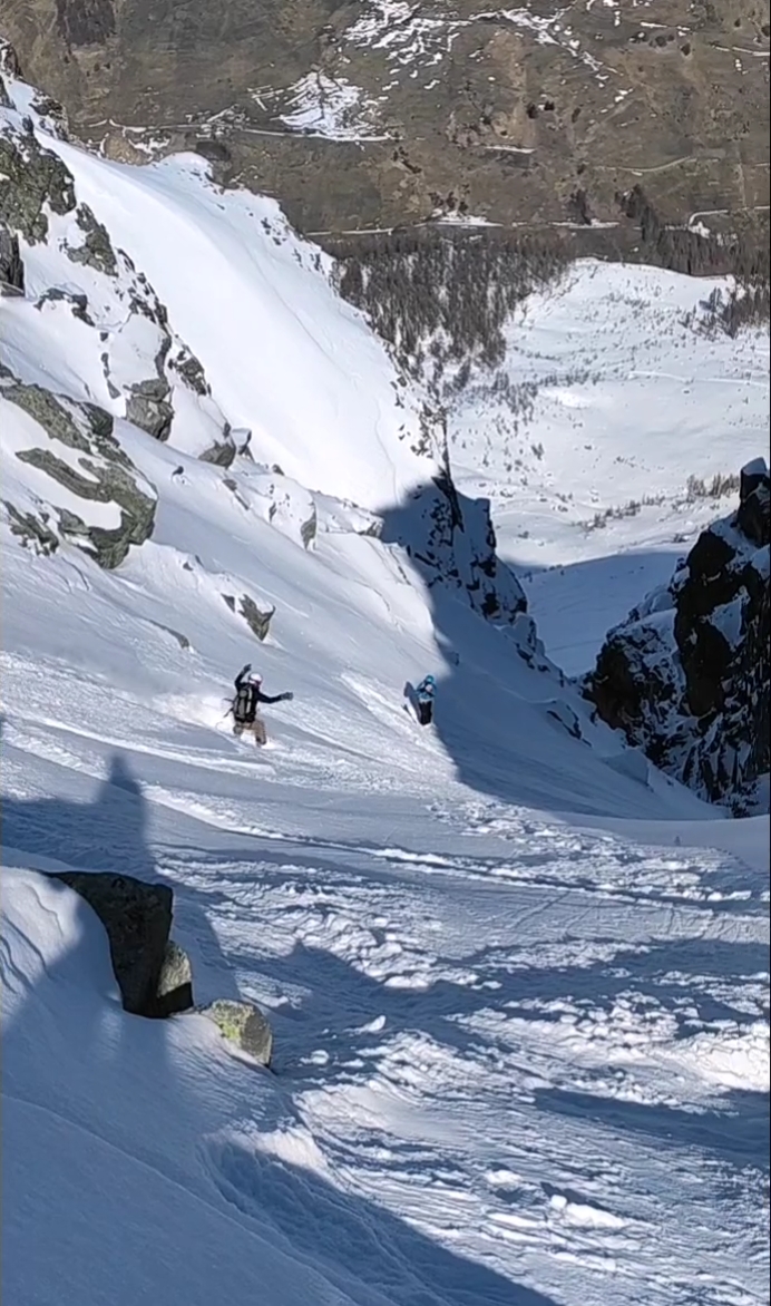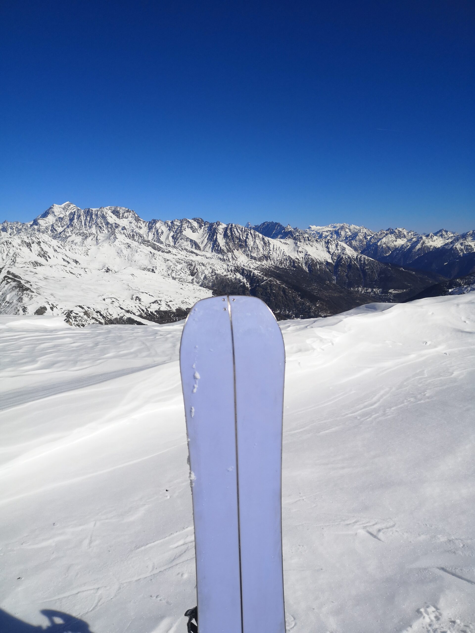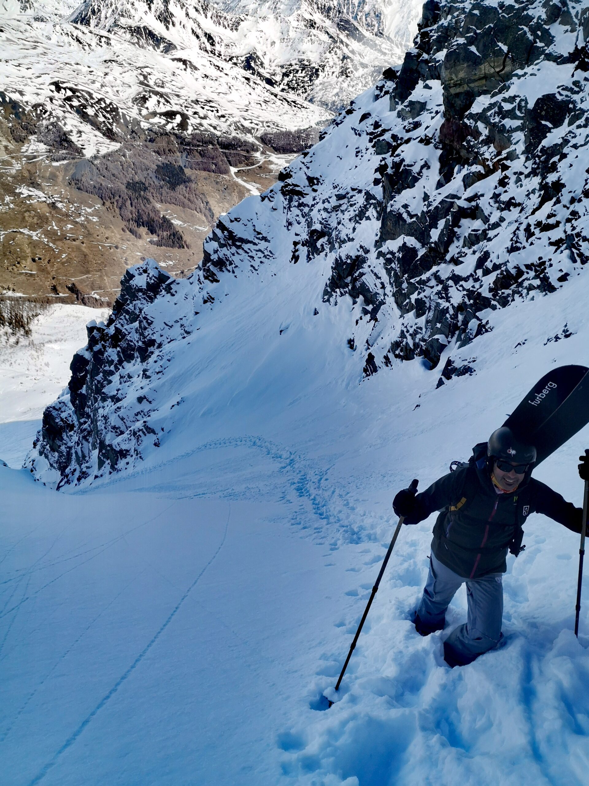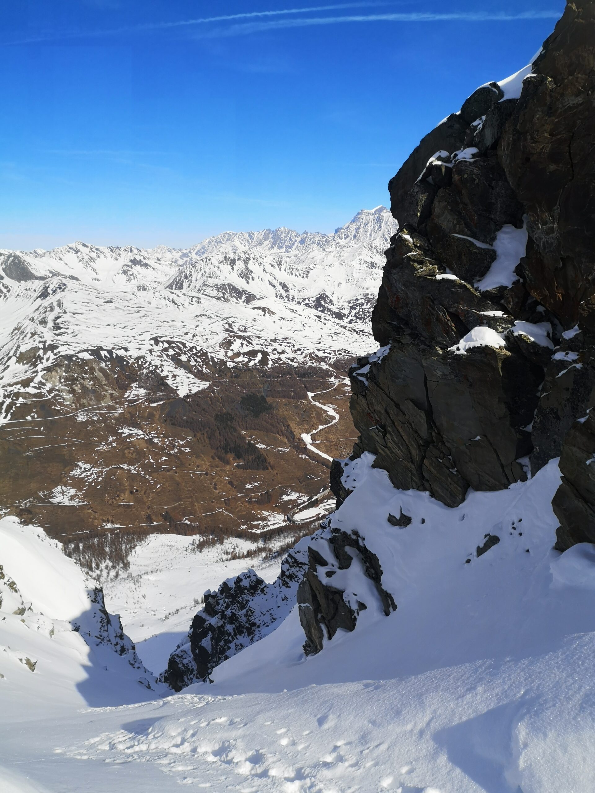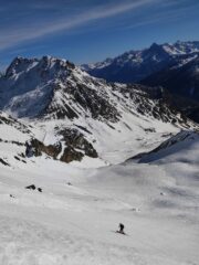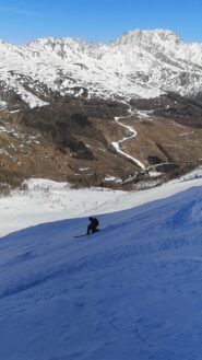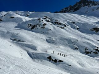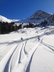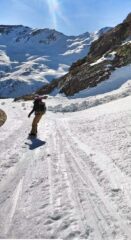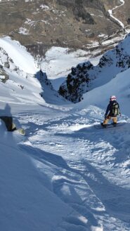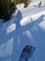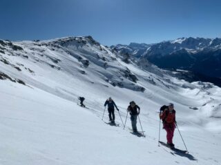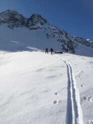 Partiti da Planaval verso le 9.30. Lungo traverso sopra un canalone ripido alla fine della poderale dove sarebbe stato meglio usare i coltelli specialmente con…