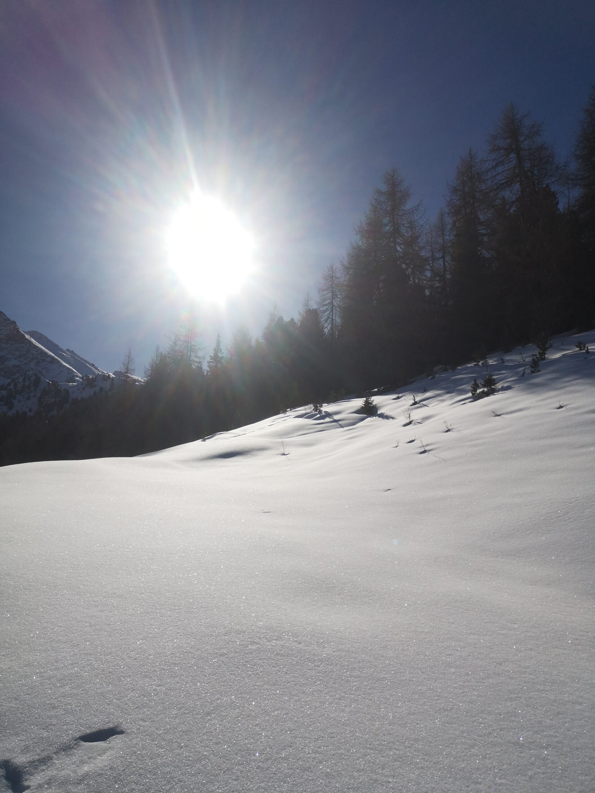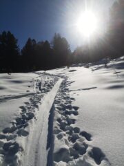 Partiti da Saint Rhémy già tardi non abbiamo avuto bisogno dei coltelli in salita anche se nella parte finale sarebbe stato meglio metterli!…