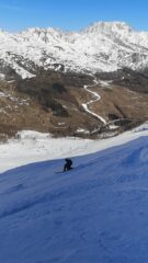 Pista 1 chiusa, risalita dall'intermedia degli ovetti. Neve dura e ghiacciata nella prima parte poi dai piani delle baite traccia nel bosco in ambiente bucolico…