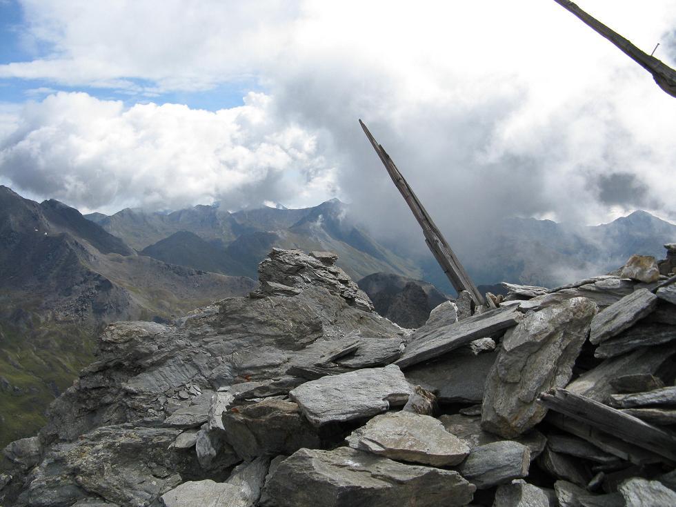 | bengia | La vetta con l'ometto di segnalazione | bengia | La Val di Thures | bengia | I segni di qualche costruzione militare | bengia | La dorsale finale di salita | bengia | Le indicazioni al Colle