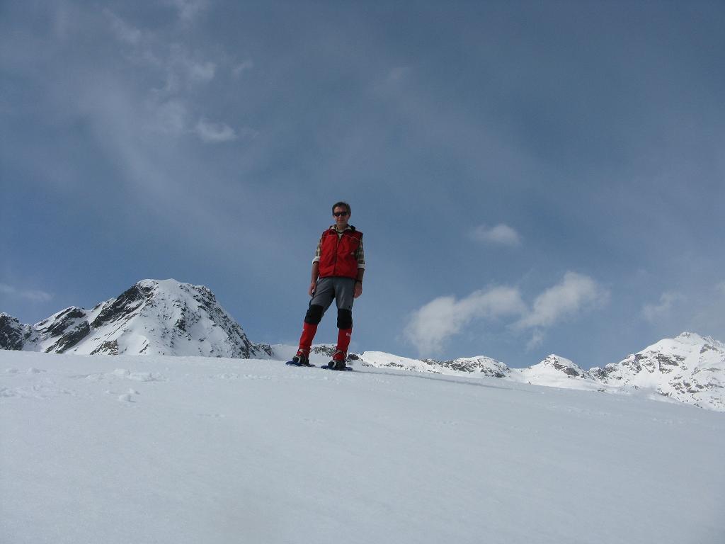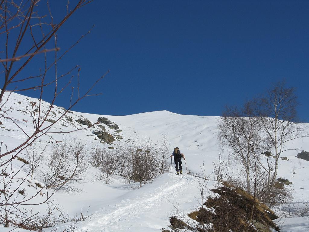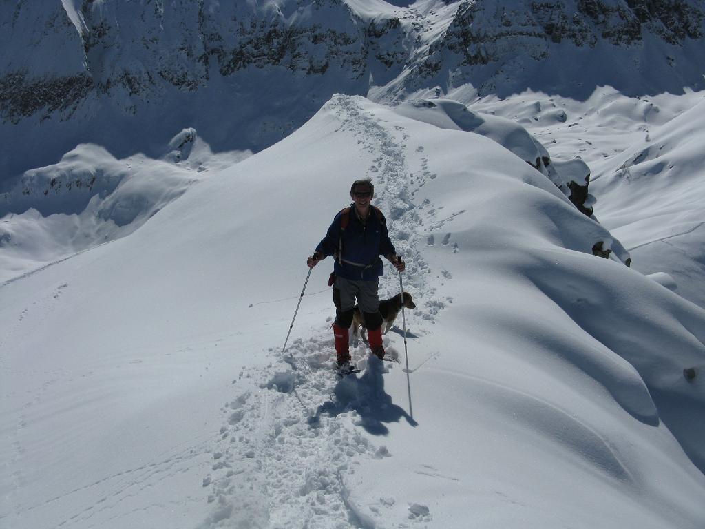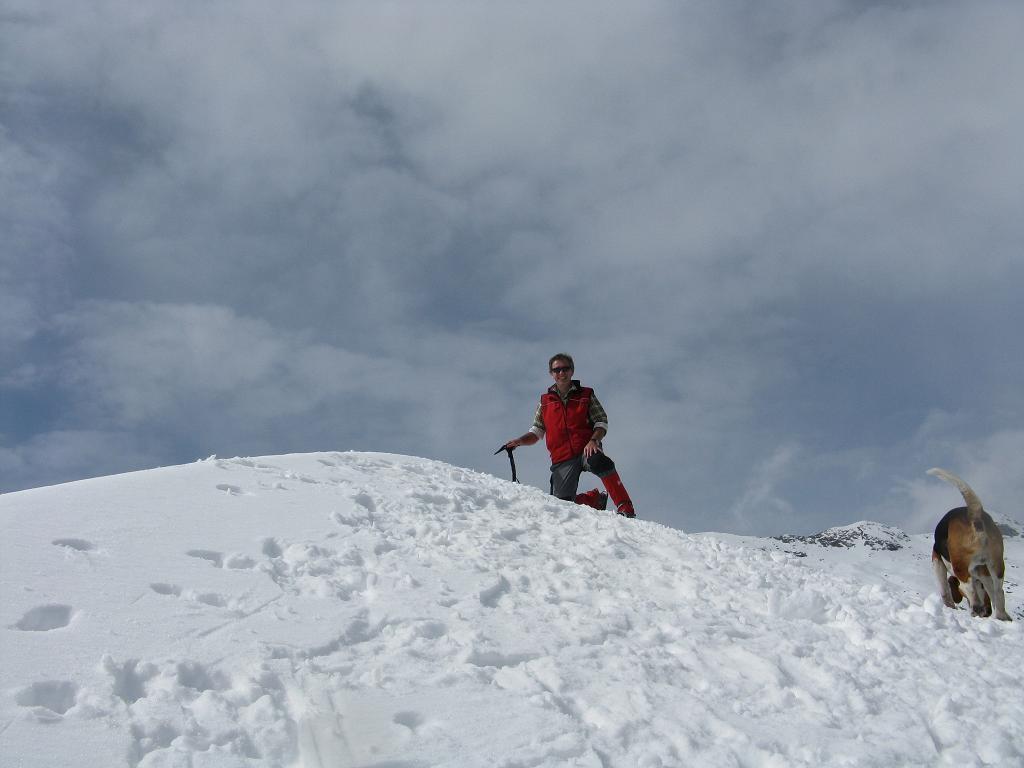 | bengia | In uscita dal bosco con la cima del Soglio sullo sfondo | bengia | L'ultimo strappo finale prima del colle | bengia | Il mio fedel Flick annaspa nella neve | bengia | In vista della Madonnina | bengia | Il Re di pietra sullo sfondo | bengia | La dorsale finale | bengia | In vetta | bengia | Con il mio amico Roby