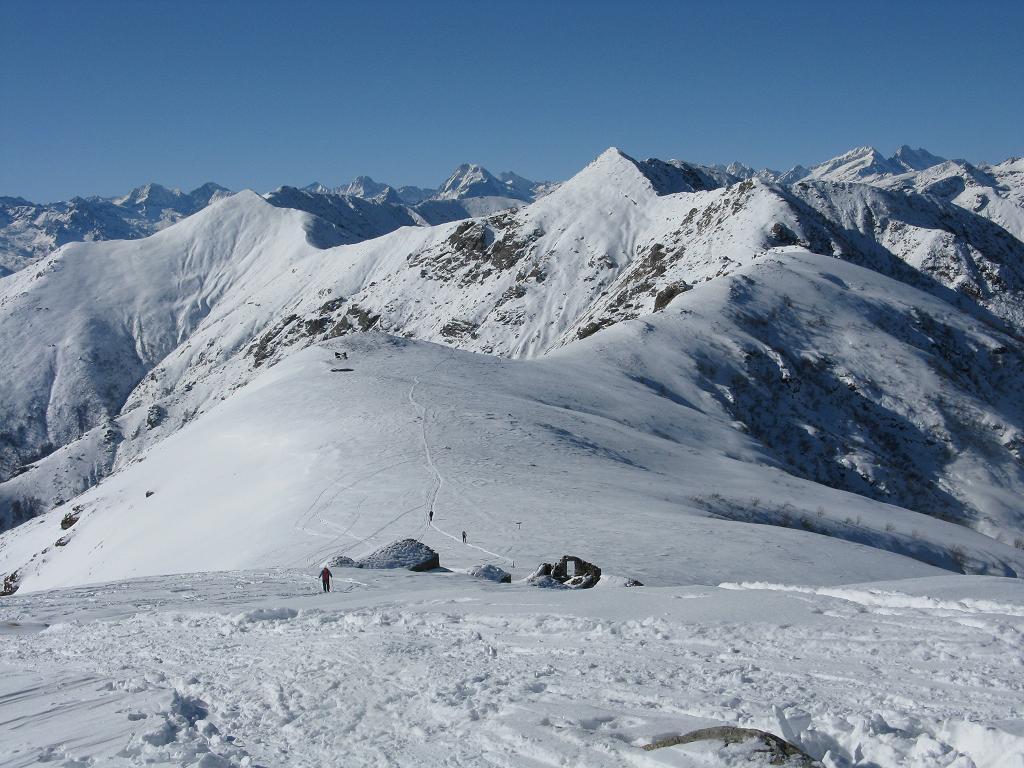 | bengia | Il Gran Paradiso fa capolino nelle nebbie | bengia | La dorsale di salita | bengia | Panorama dalla vetta | bengia | In vetta | bengia | In vetta | bengia | Fuori dal bosco lungo la pista da sci