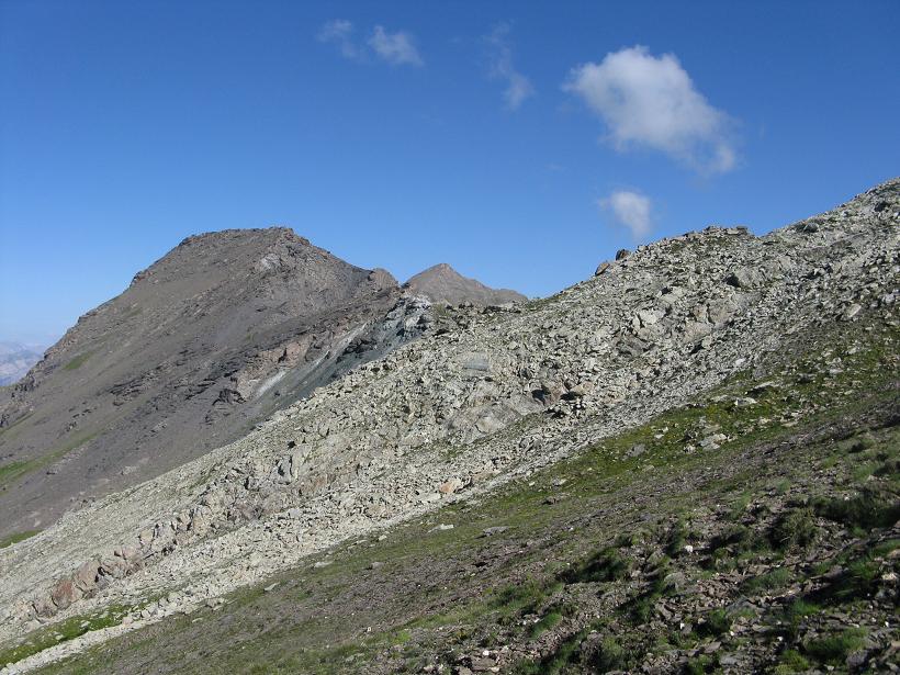 | bengia | le prime indicazioni alla partenza | bengia | Punta Fauri Sud e sullo sfondo la Rognosa del Sestriere | bengia | Flick è già arrivato in cima | bengia | il Monte Barrifreddo e la cresta di salita | bengia | Punta Ramiere | bengia | Bengia in vetta