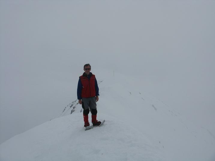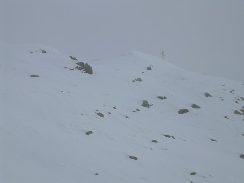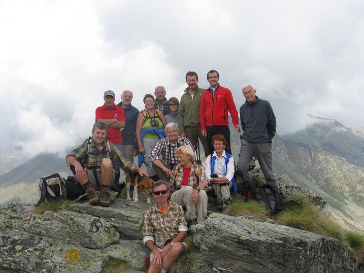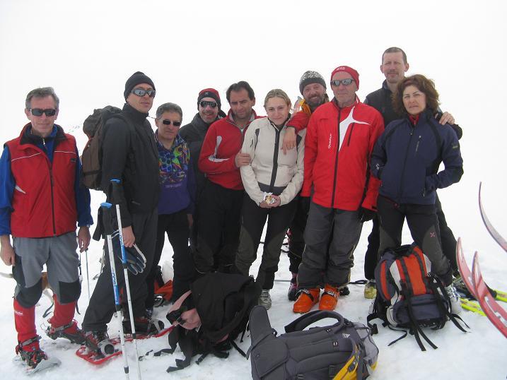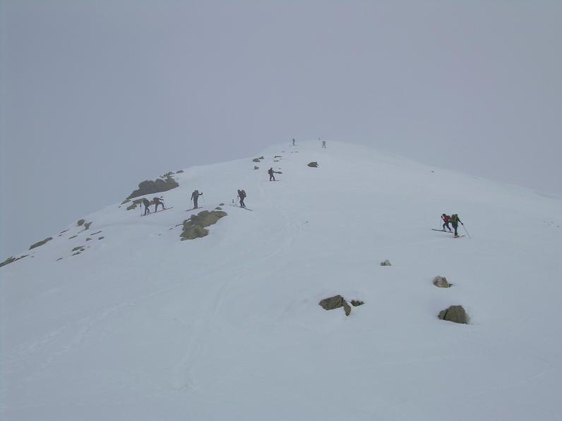 | bengia | ci si prepara alla partenza | bengia | si arranca nella nebbia | bengia | la dorsale finale prima dell'anticima | bengia | si intravede la croce della Punta SUD | bengia | il gruppo in vetta | bengia | BENGIA in cima