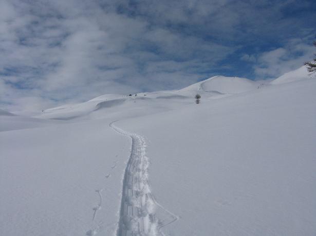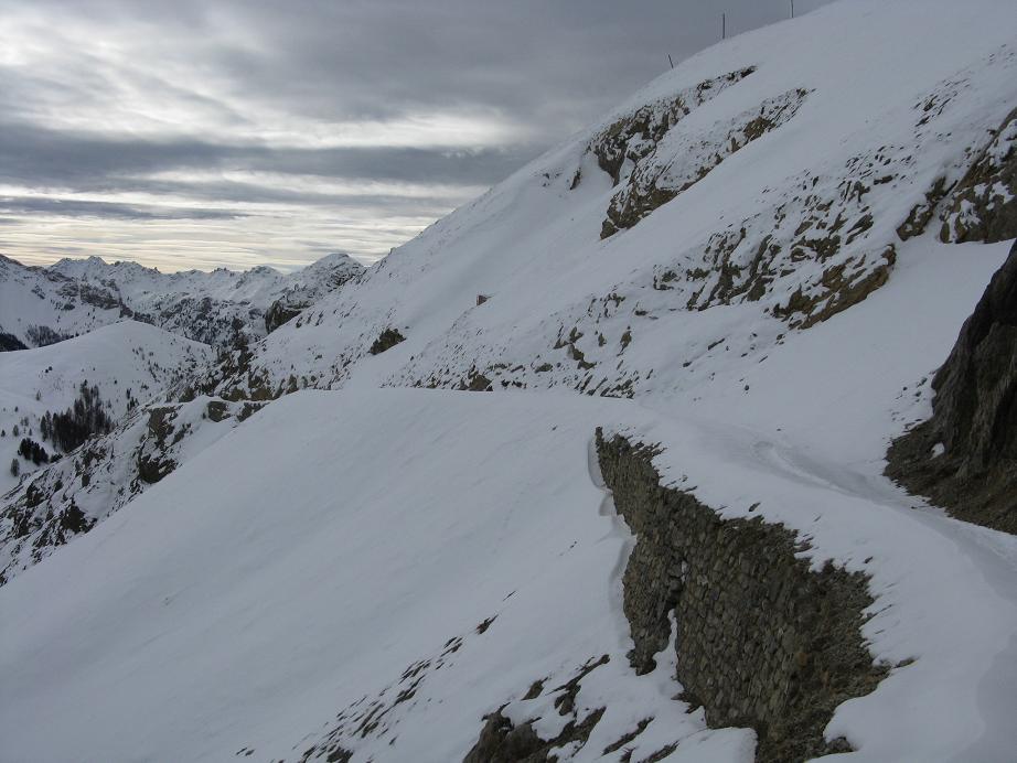| bengia | tratto centrale del percorso | bengia | arrivo al forte | bengia | in cima | bengia | con il forte | bengia | vallone del Gondrand | bengia | tratto della stradina innevata