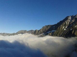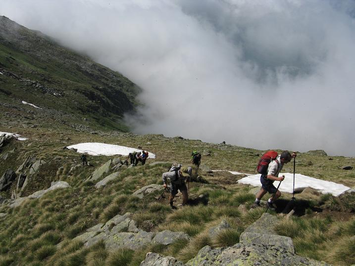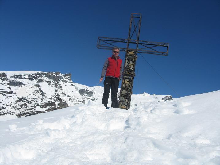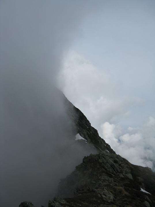 | bengia | il bel paesino di Scalaro | bengia | indicazioni chiare | bengia | il secondo nevaio da attraversare | bengia | tratto di sentiero attrezzato | bengia | inizio della cresta finale | bengia | il Cervino fa capolino in mezzo alla nebbia e alle nuvole | bengia | nebbia di quà | bengia | BENGIA in vetta | bengia | la Madonna Nera del Bec | bengia | incisioni rupestri