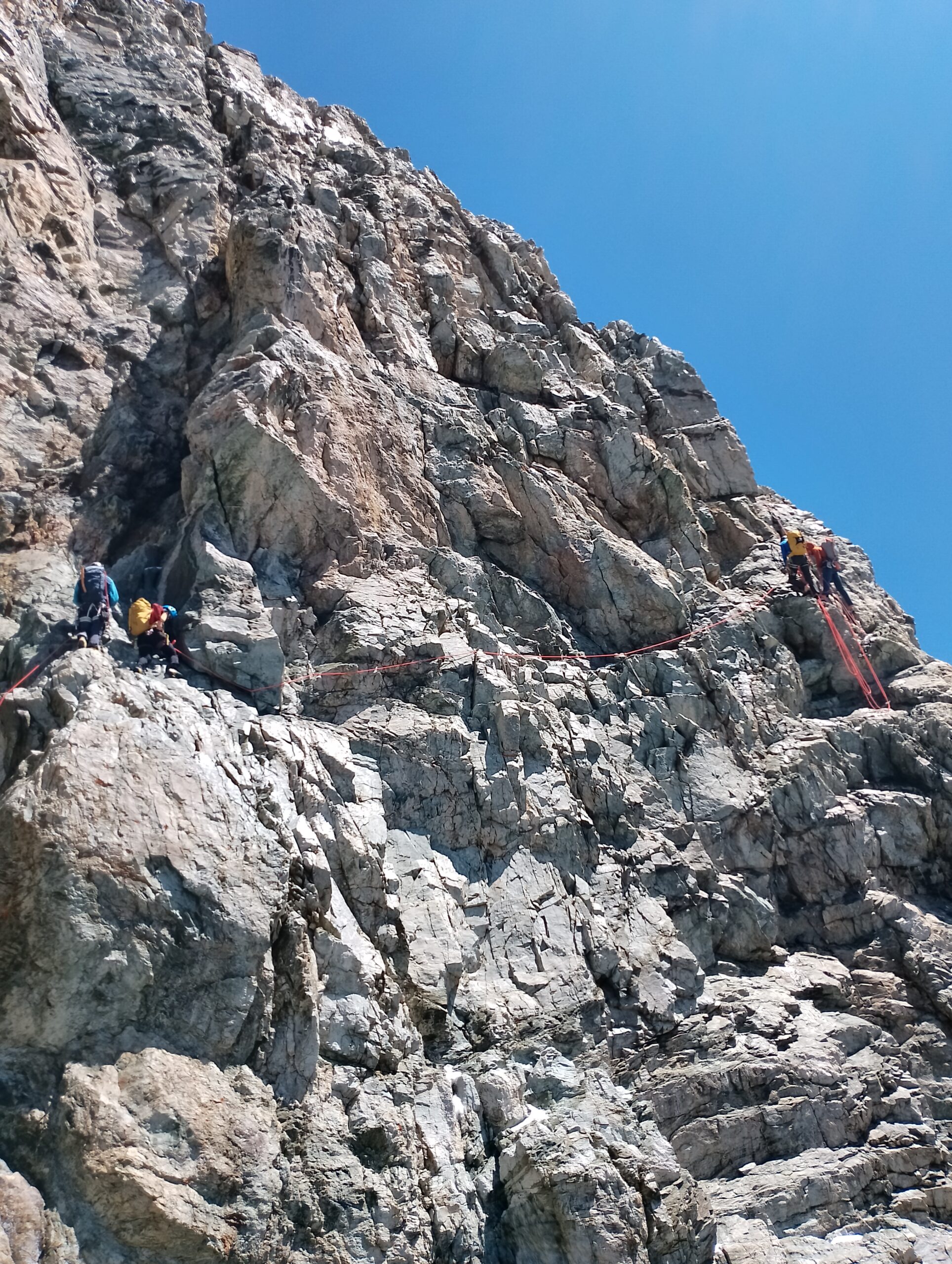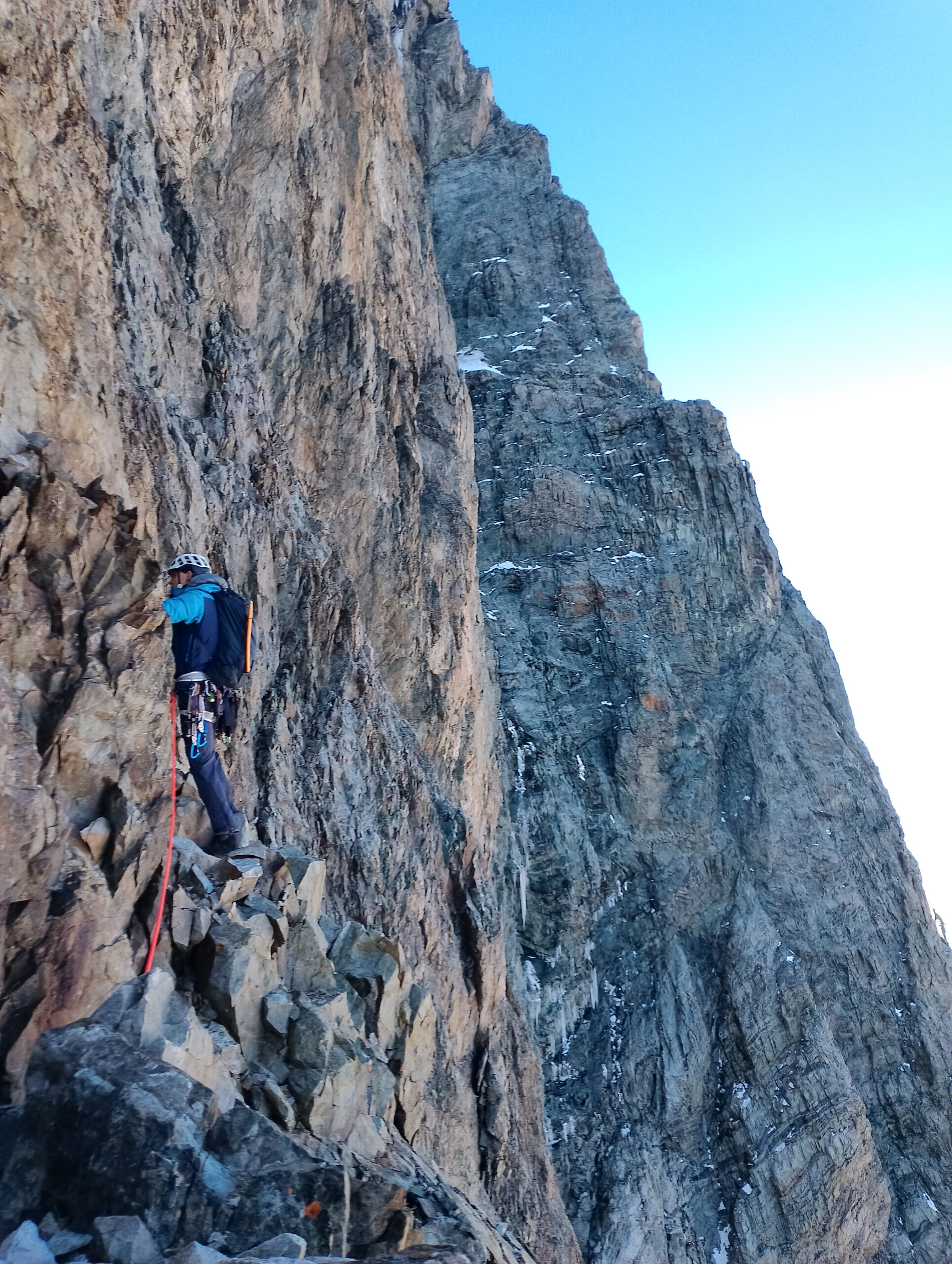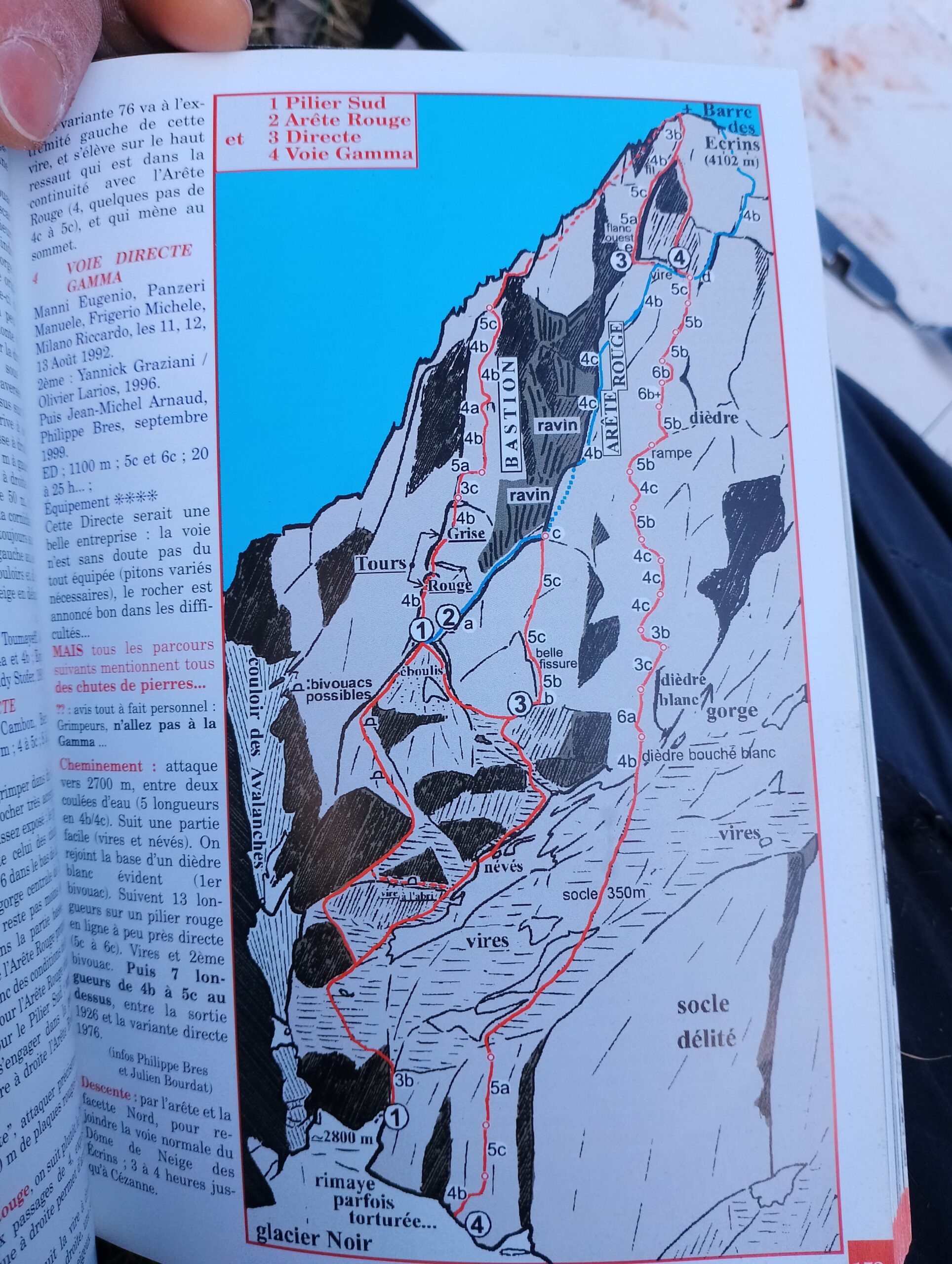 Salita in ottime condizioni, terminale ok, tiri asciutti e canale di uscita alla breche Lory a posto. Sul Bastion seguendo i tiri segnalati dallo schema presente…