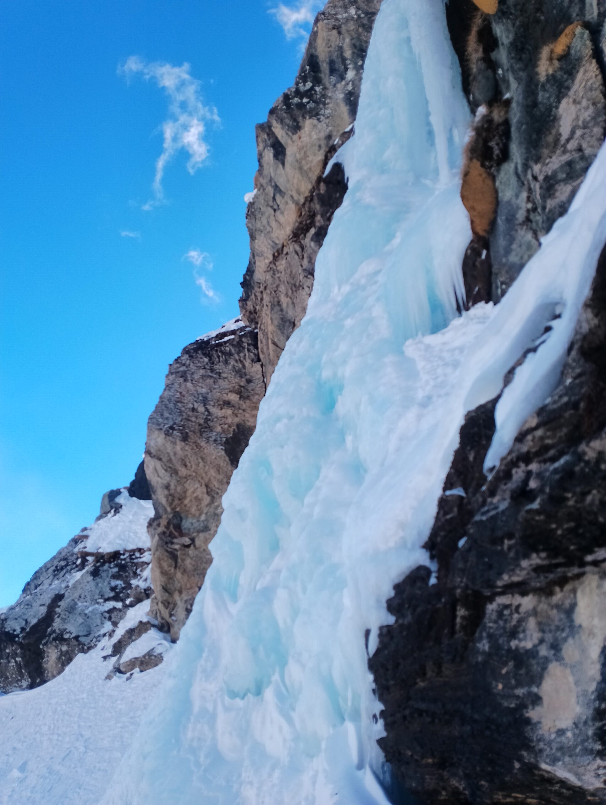 Il luogo e le cascate sono davvero belli. Avvicinamento in 1h30, comodo, traccia sul pendio finale. Presenza di accumuli di neve ventata a cui fare attenzione. Cortoz…
