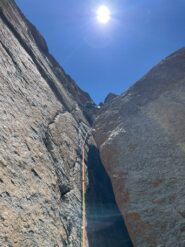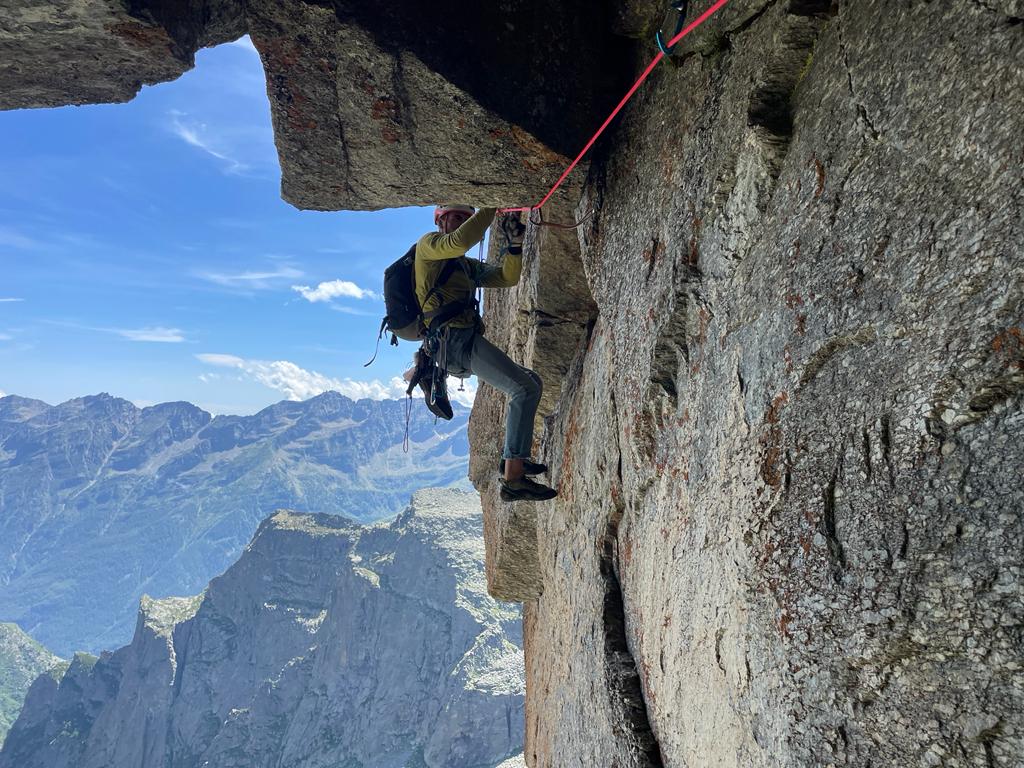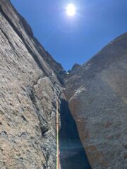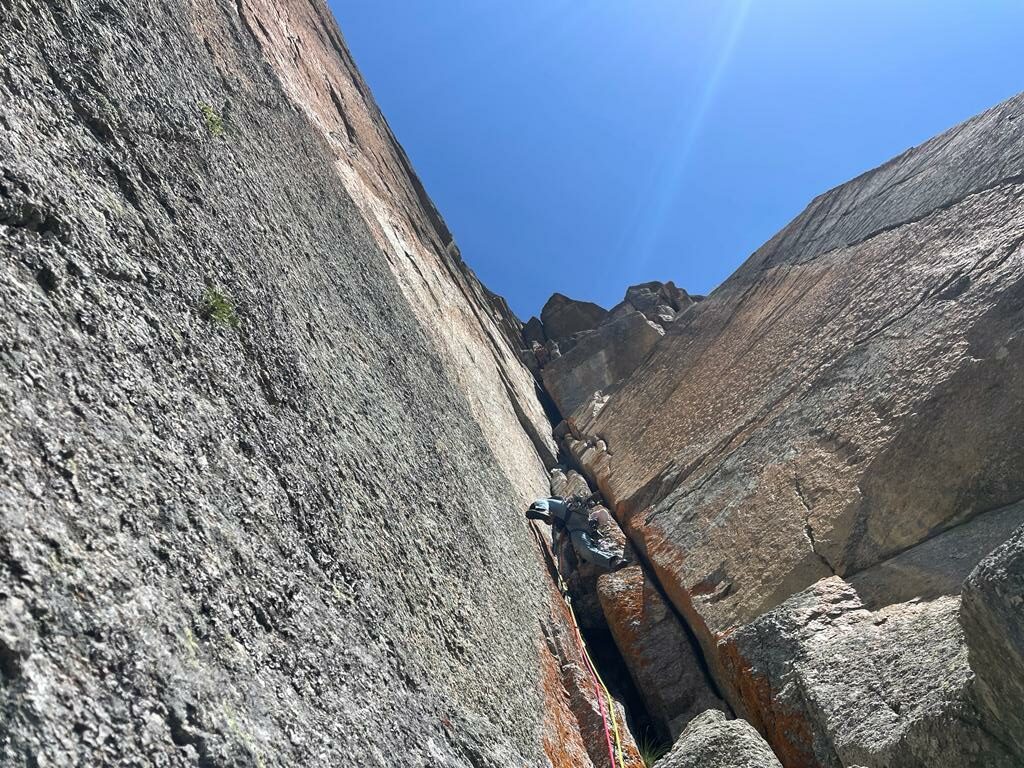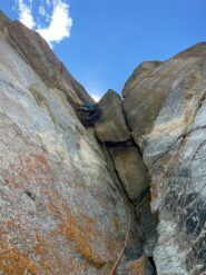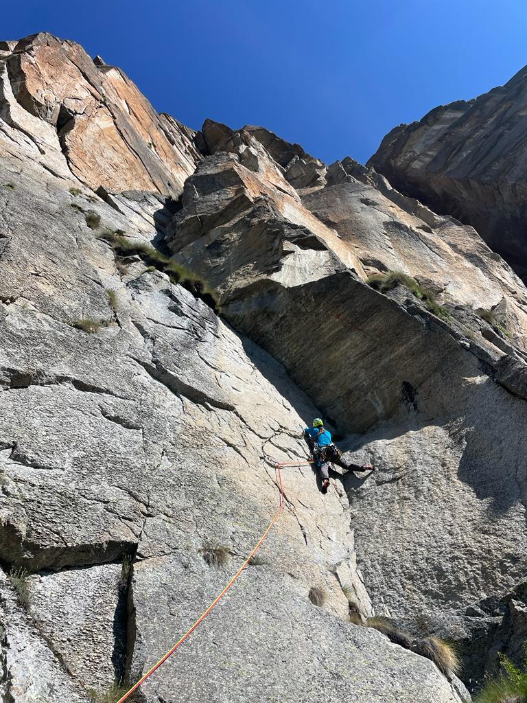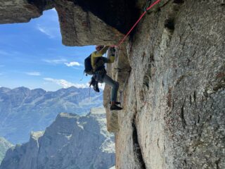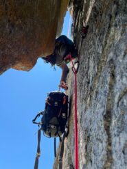 Salita impegnativa e richiedente esperienza alpinistica per il terreno e la posa delle protezioni. Usate due serie di friend dai micro al 5 più un 6,…