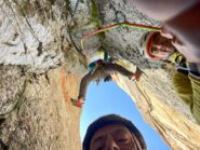 Solo per segnalare che facendo le doppie dal 6° tiro, abbiamo smosso una grossa pietra che é si é staccata e poi incastrata nuovamente perfettamente…