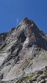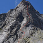 Via grandiosa in ambiente di alta montagna. Il pilastro è una struttura colossale di granito e la via si sviluppa lungo una serie di fessure e…