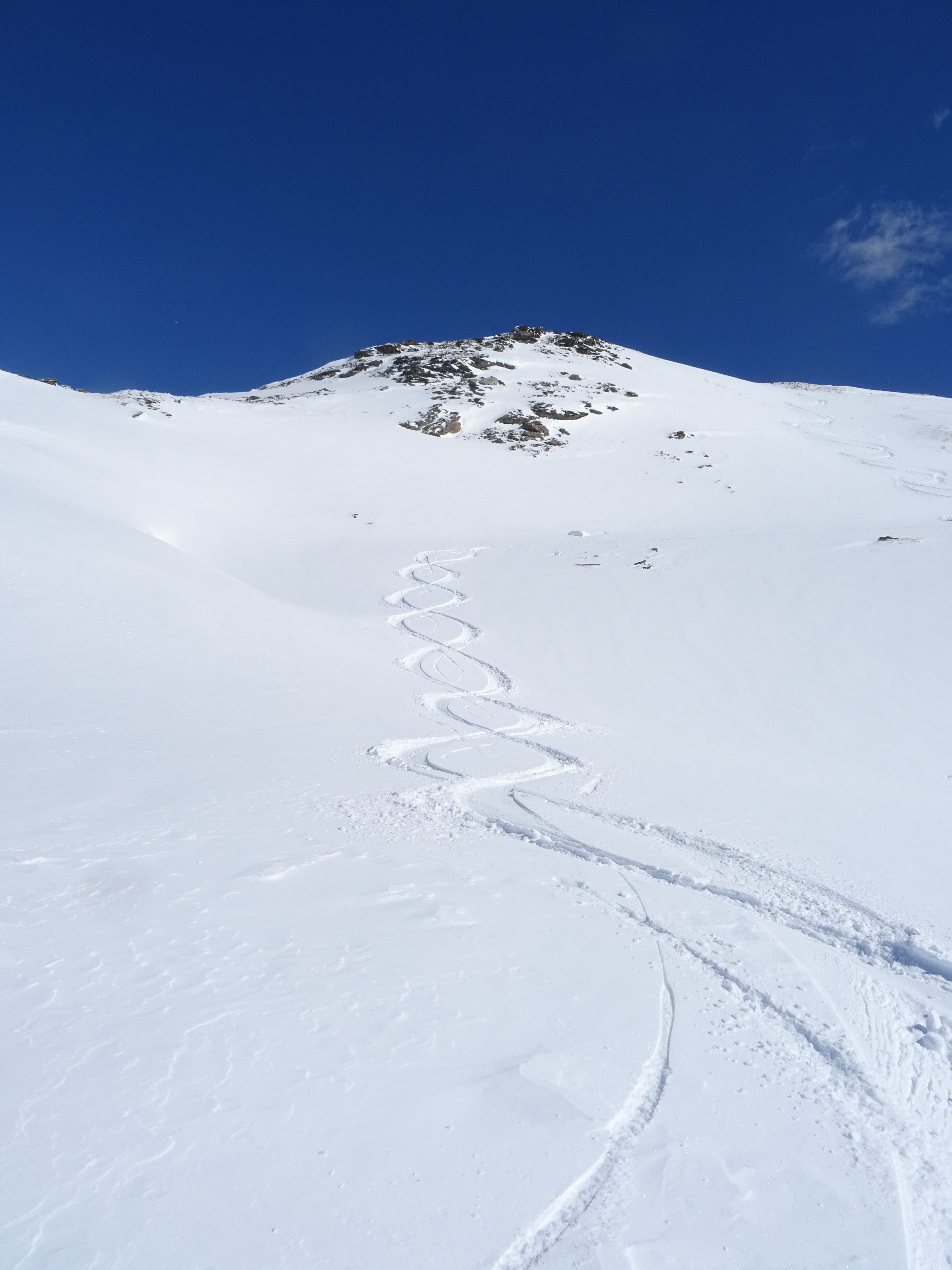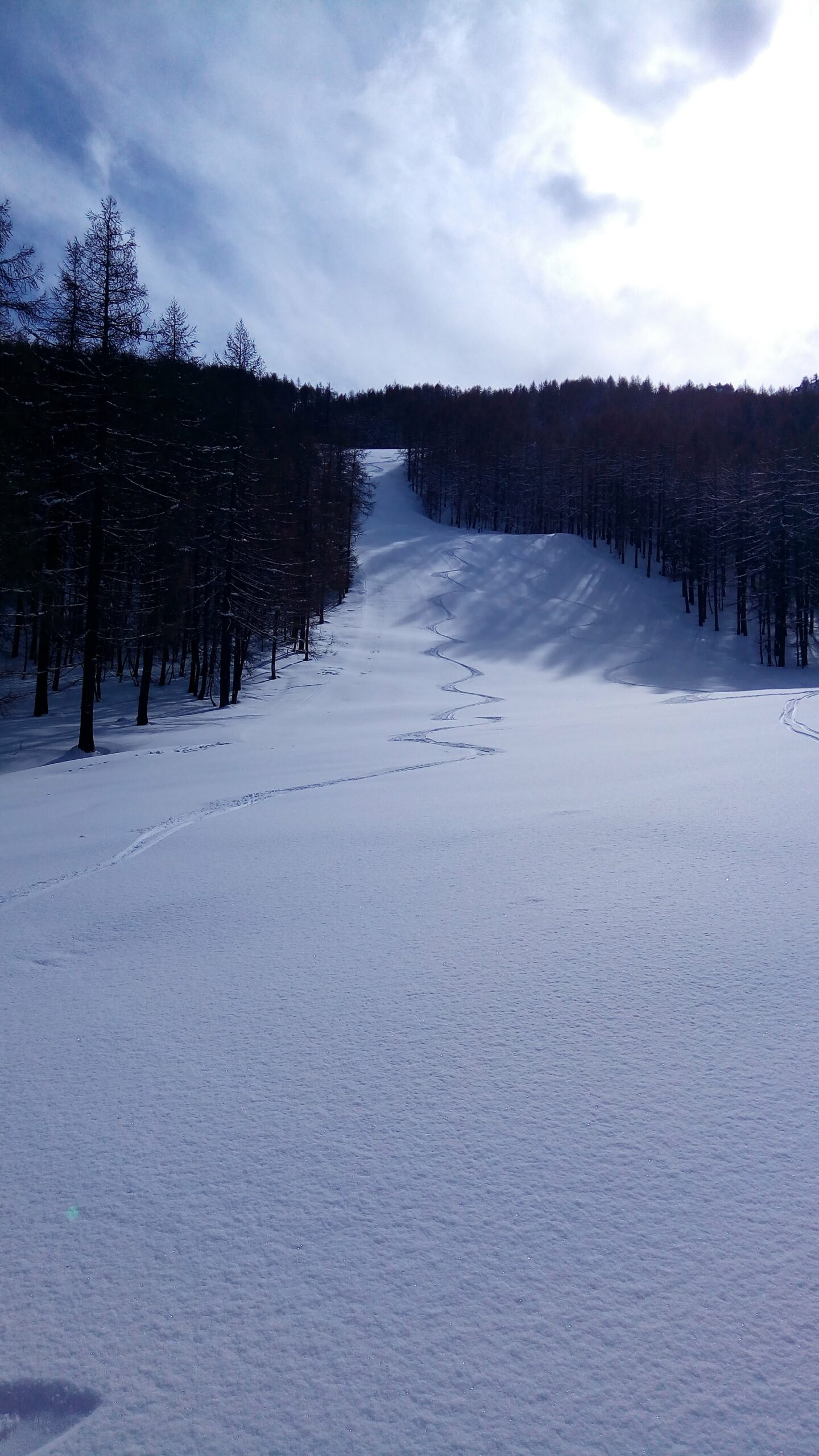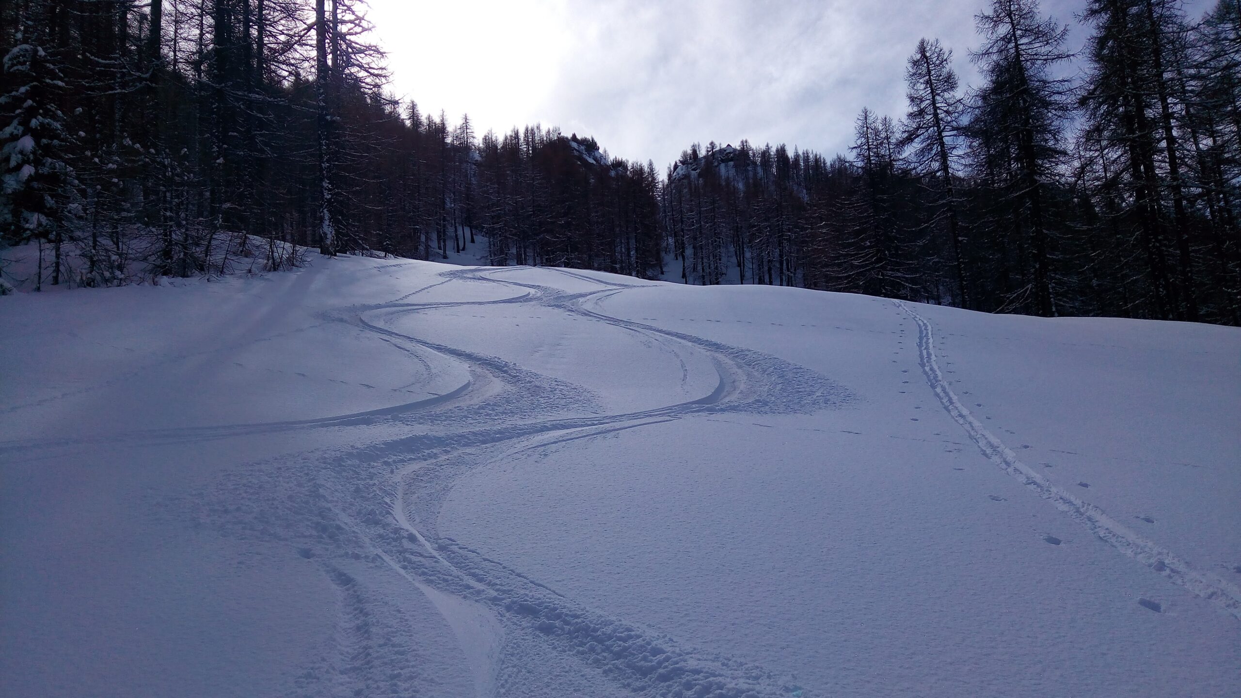 Gita propedeutica in vista della gita di domani coi BIG,in salita ho seguito la strada con 10 cm. di fresca su ottima traccia,discesa da urlo…