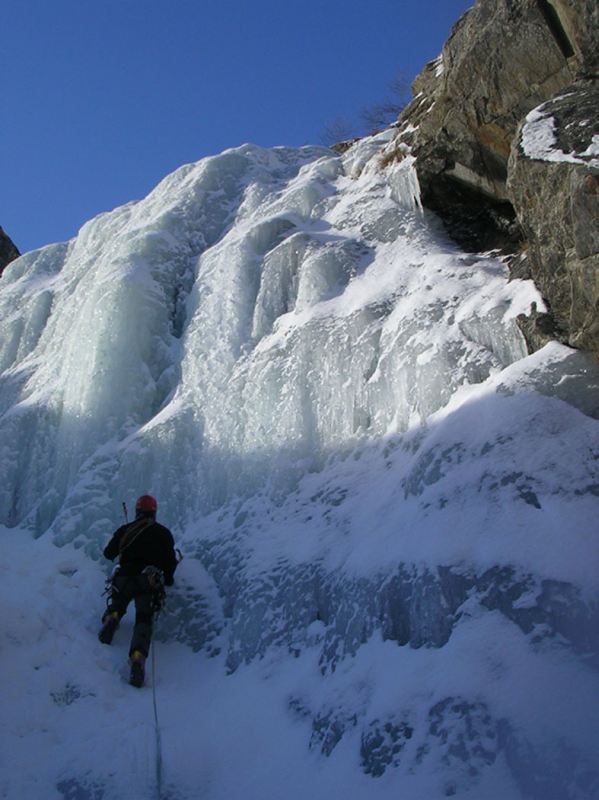 uscita con il corso uget,molto delicato il primo tiro,ghiaccio sottile e roccia,protezioni difficili.Tanta neve sulla cascata,30cm,piu la fatica a pulire che a salirla.la quantità di…