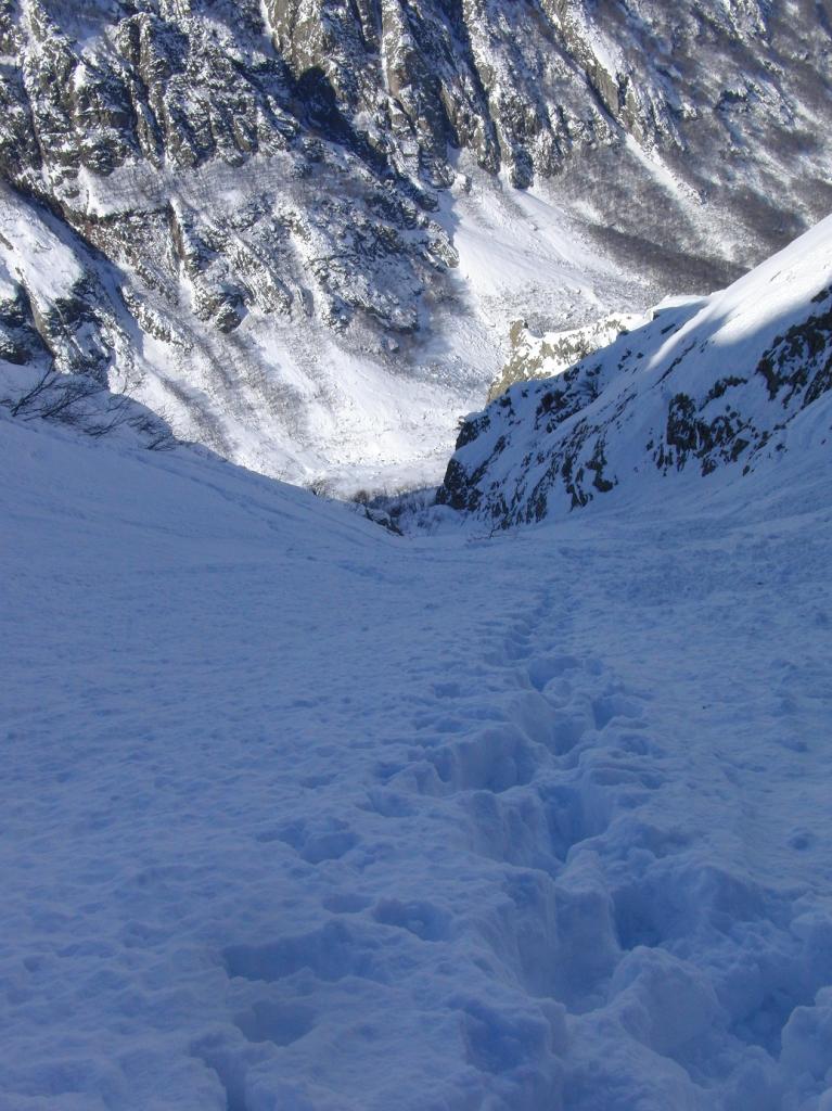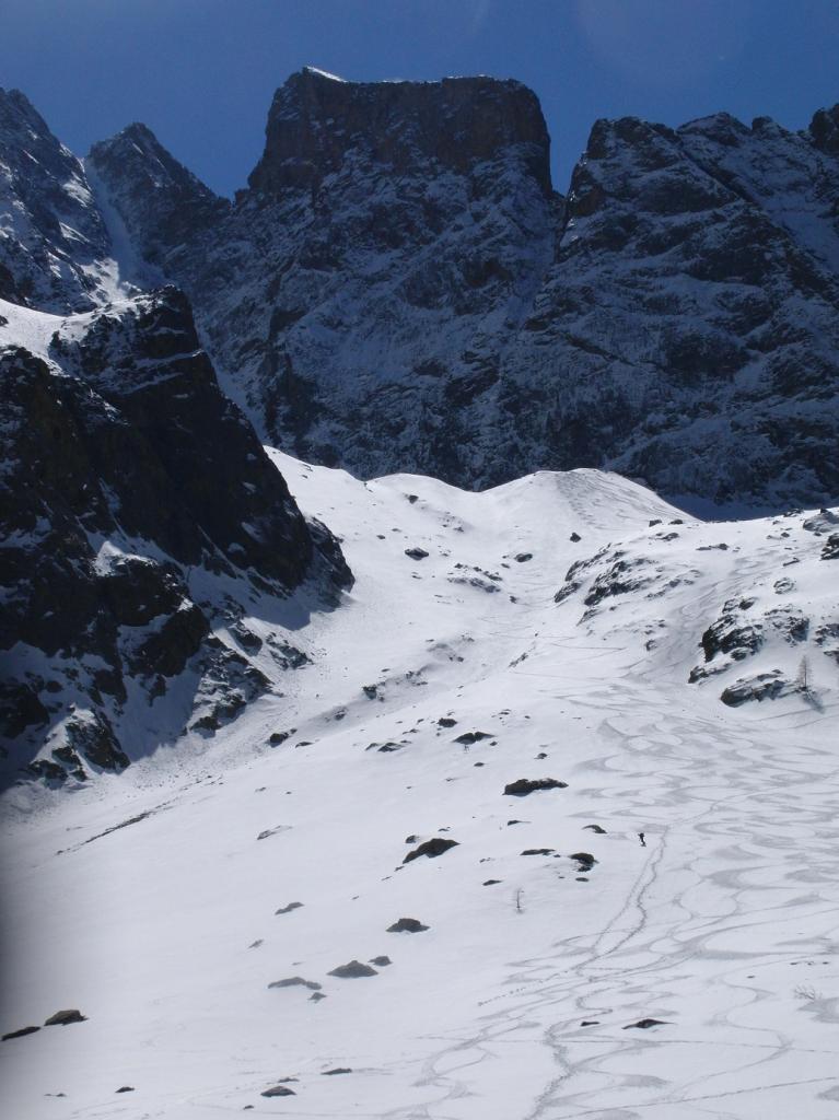 | bolla | couloir Zen al mattino, magro ma passiamo | bolla | bonne neige | bolla | neve e roccia | bolla | il couloir visto dalla cima rocciosa | bolla | Argentera, parete Ovest | bolla | parte alta | bolla | pennellate | bolla | conoide da firmare | bolla | Pian del Valasco