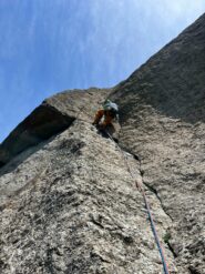 Attaccato la via intorno alle 8 e nonostante quota ed esposizione oggi faceva comunque caldo, sole in parete fino alle 11.30. Alcune note sui tiri:…