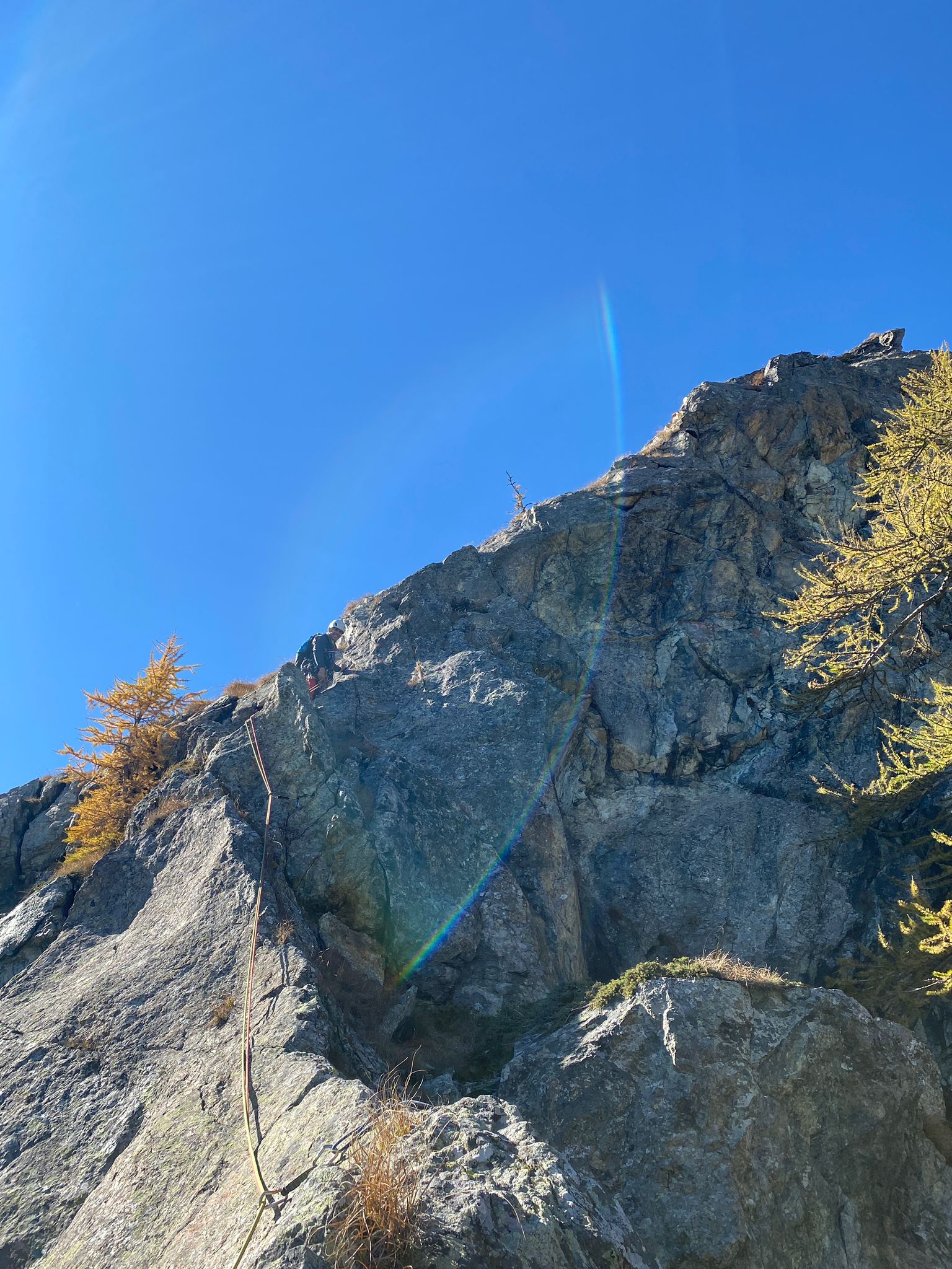 Bella via in ambiente magico e molto panoramico. Necessari friend medio piccoli. Roccia buona con arrampicata varia e divertente. Soste da collegare.