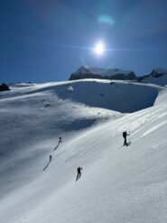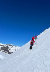 40/45 minuti di cammino sul sentiero. Ottimo rigelo notturno. Si sale con sci ai piedi dal colle Leynir, coltelli utili. Fantastica discesa sul versante nord che evita…