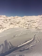 Ci siamo fermati al colletto di Nana schivando il malotempo. Scesi dal versante Est. Tanta neve bella e sicura. Si riesce a partire per prati…