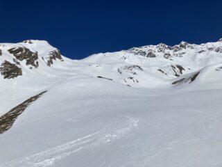 Sci ai piedi da Plan Debat tenendosi a sx salendo Ancora solo scarichi di pulizia dell'ultima neve