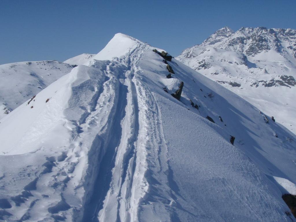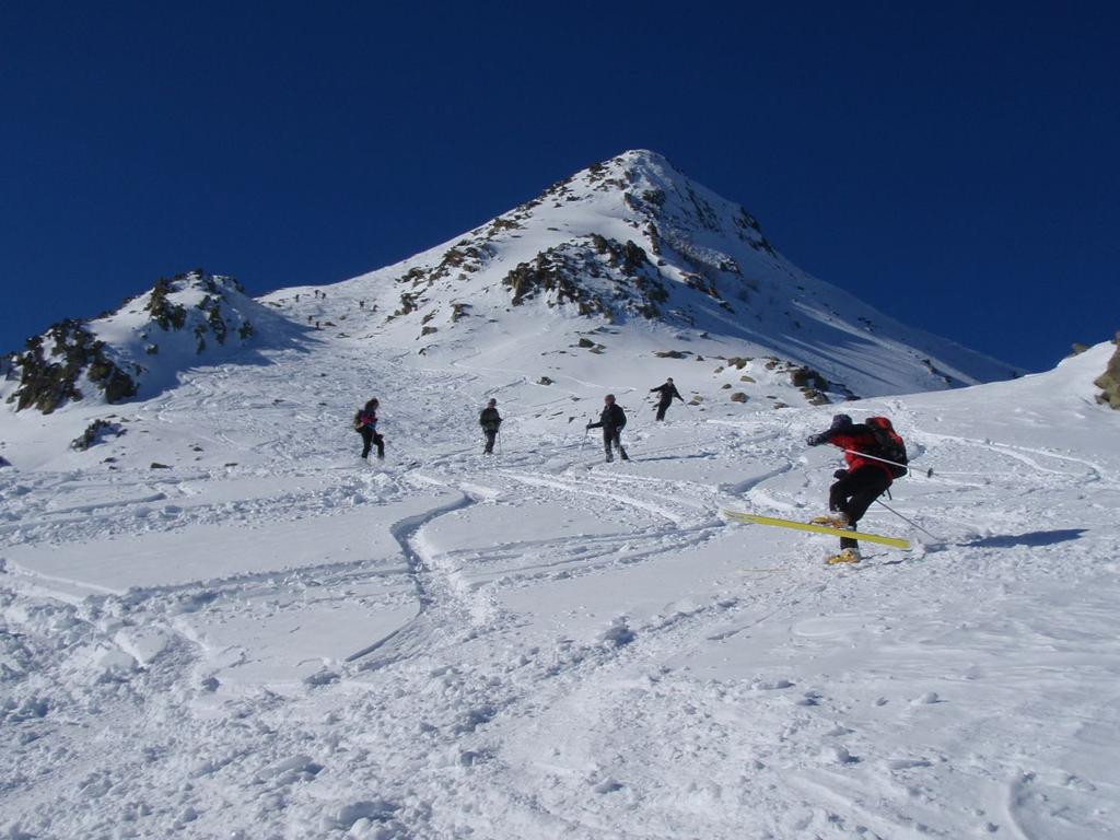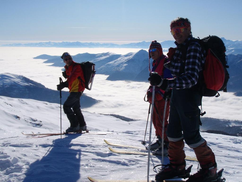 | brunocamol | Gruppo in salita | brunocamol | gruppo sulla dorsale in vista della punta | brunocamol | in punta | brunocamol | Kristal in discesa | brunocamol | fyplon scende in telemark | brunocamol | Piero sulla massima pendenza