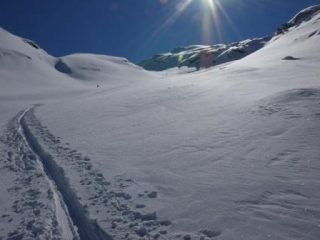 Gita in buone condizioni, la parte bassa (strada, poi canale ripido fino al pianoro) con neve pressata e compattata dal caldo; la parte alta ha…