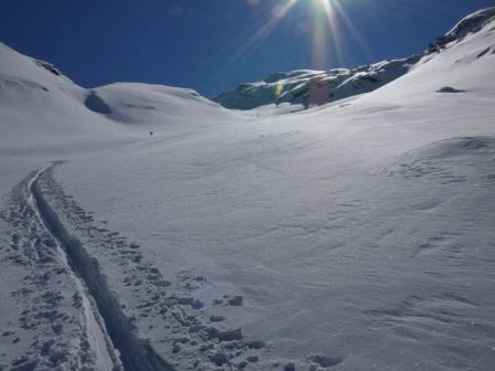 La parte alta ha una bella farina leggera, ma non c'è fondo, per cui si toccano pietre. Molto belli i pendii mediani, mentre l'ultimo pendio…