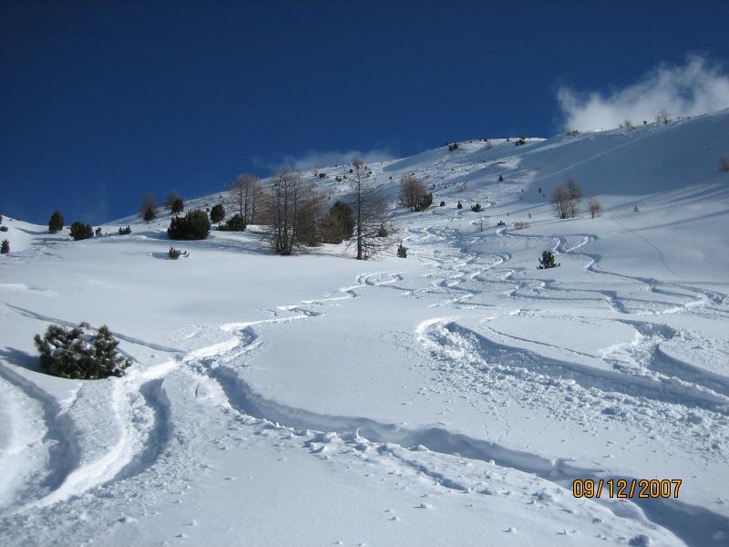 Saliti dal vallone di Marmora e discesa in ottima farina nel combale della pèna. Le 4 stelle sono per la crosta della parte bassa