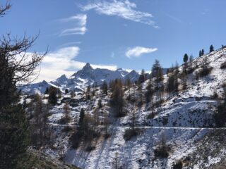 Solito sentiero pieno di pietre, quasi niente neve fino al colle, poi un po’ fino in vetta. A parte qualche pezzetto ghiacciato il resto senza…