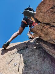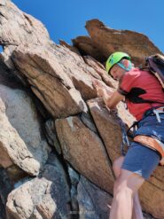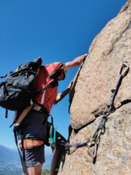 Mattinata di sole con folate di vento dalla val di Susa, cielo terso, temperatura ottima sui 20 gradi. La via è in condizioni perfette ripulita…