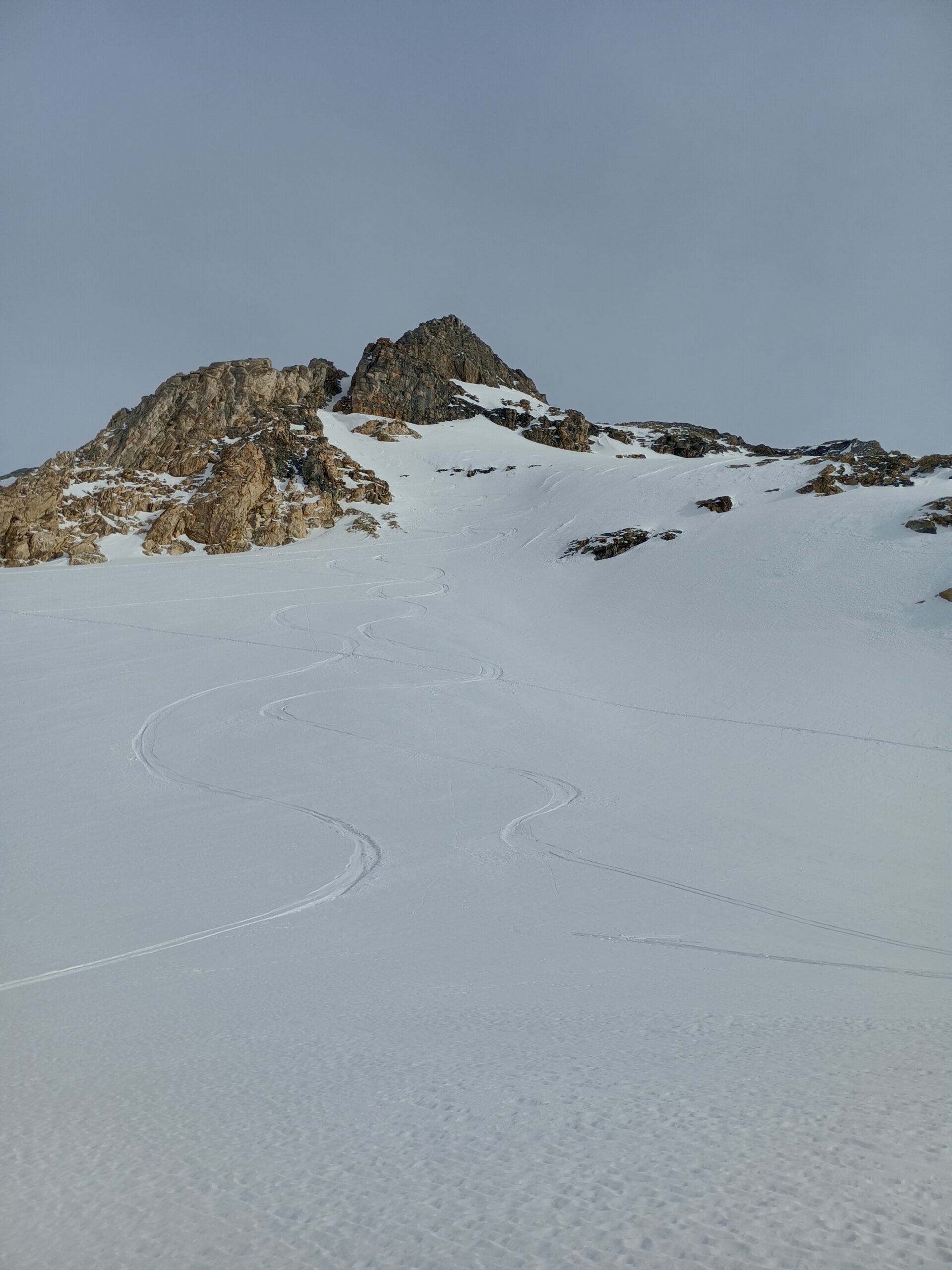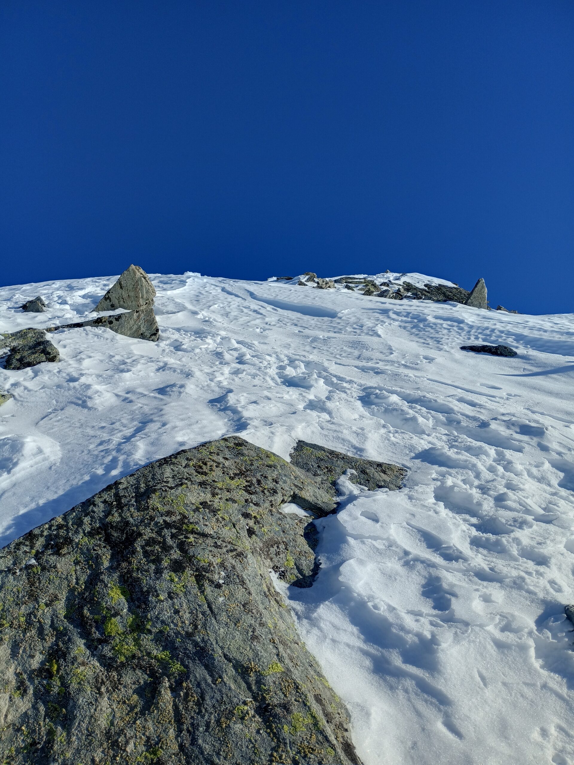 | bugsdistru | Verso l'ingresso del canalone | bugsdistru | Dalla cima del canale | bugsdistru | | bugsdistru | Ultimo pendio prima della cima | bugsdistru | Traverso | bugsdistru | Deposito sci e ultimi metri | bugsdistru | La ravanata
